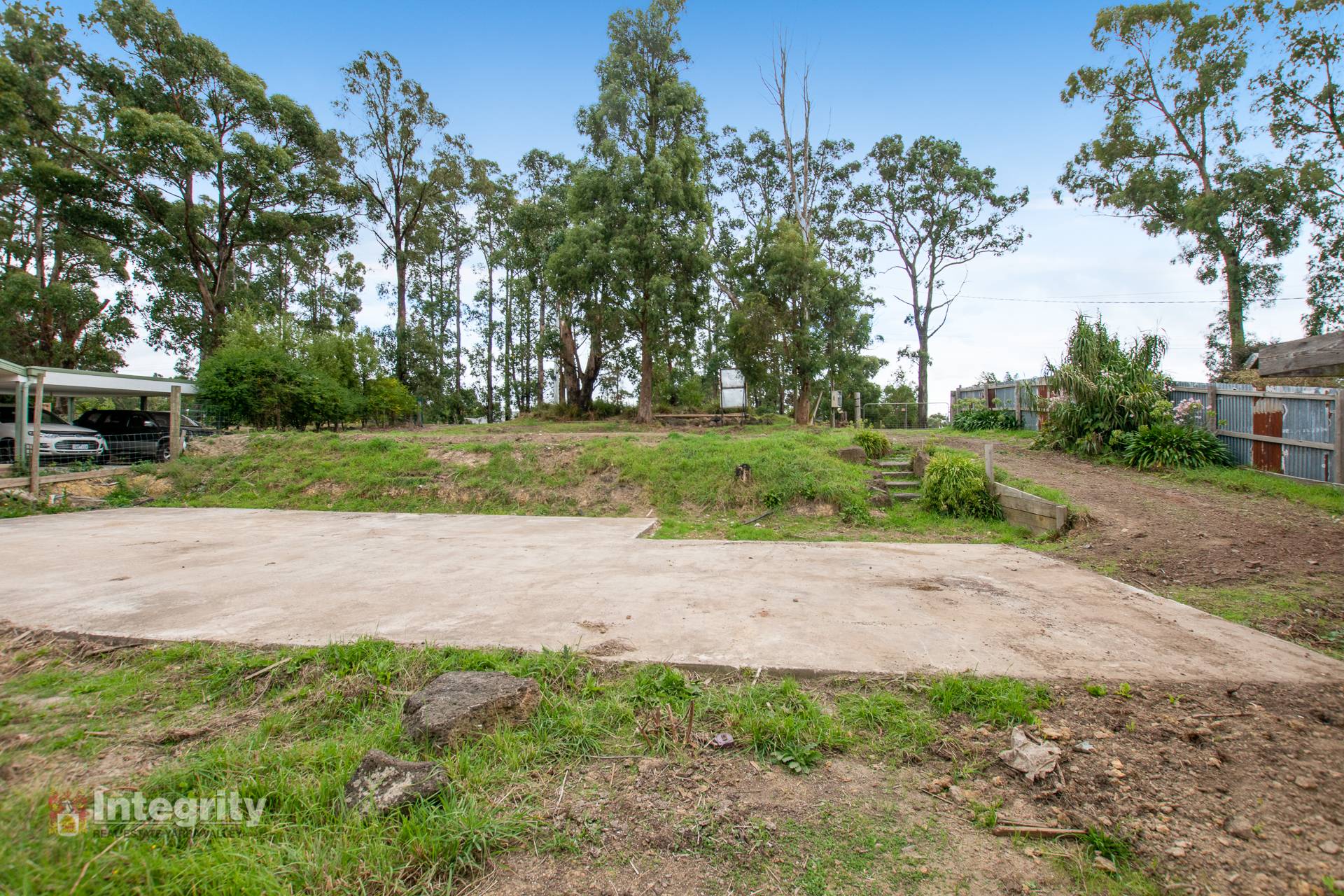 A space for a circular driveway off the road has already been cleared, setting up for a future pretty entrance driving in to the view of a long front veranda. A single level home would be fantastic to make the most of the space and view out in to the leafy canopy beyond, with big garage underneath. The block gently slopes from the front boundary to the rear boundary and the land has been excavated in to 4 levels/tiers for ease of use. Garden beds of ferns and established trees provide privacy and encourage birdlife to come visit. The carport can be refurbished for use or removed.