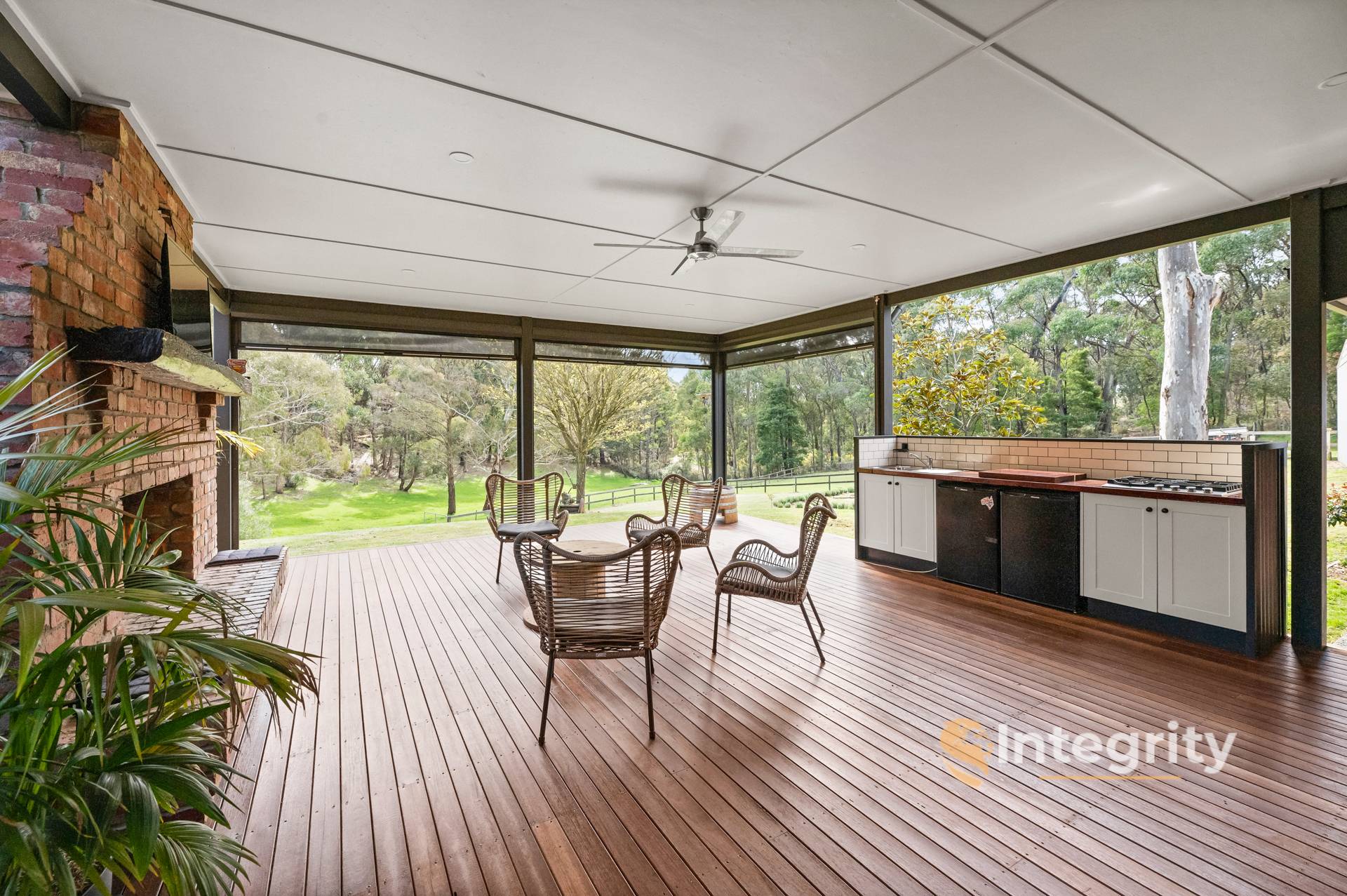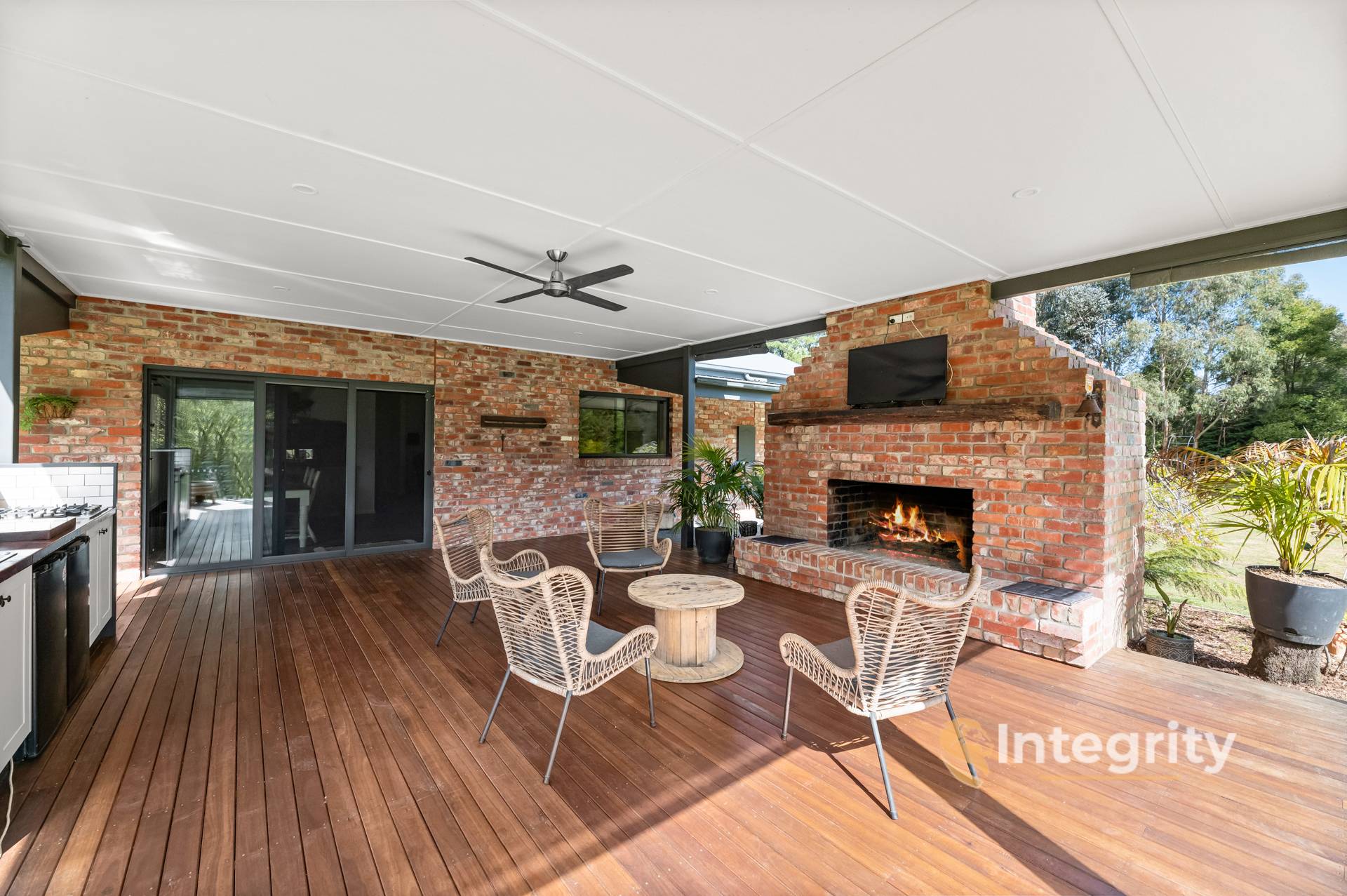 Spilling flawlessly outside is an entertainer's delight. Showcasing a huge undercover decking space with open fireplace, outdoor kitchen, outdoor blinds, and ceiling fan making it suitable for all seasons. The undercover exposed aggregate pathways wrap around the entire reclaimed red brick home creating low maintenance landscaping.