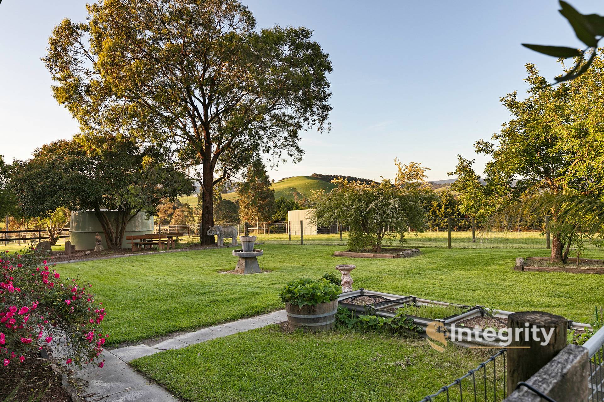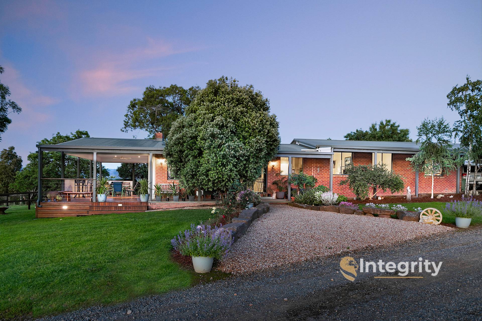 The home is a well-appointed 4 bedroom, 1 bathroom brick veneer with entertaining oriented to the view and four car accommodation. There is a view from every window. Practicality is front-of-mind with an open plan flow-through kitchen / meals area adjacent to a spacious living room. Laundry / mud room provide ease of access when maintaining the grounds. Features of the home include double shower, reverse cycle split system and wood heating.