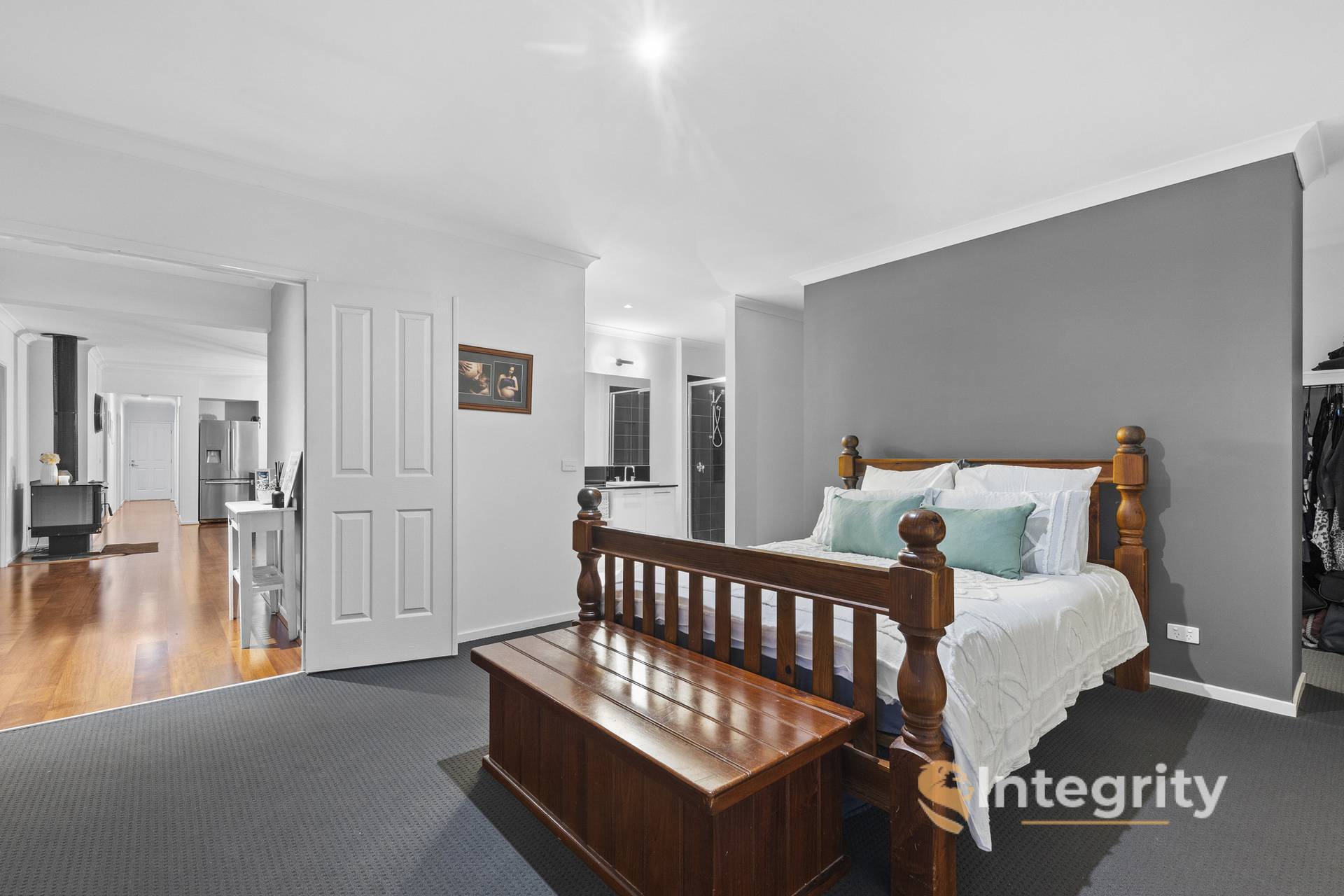 Some of the many features include master with walk-through robe and open en suite with double vanity, wood heating and reverse cycle split system heating/cooling, built-in robes to all bedrooms, and a huge walk-in linen cupboard. The laundry room has a clothes bin, additional linen/storage cupboard with plenty of storage space.