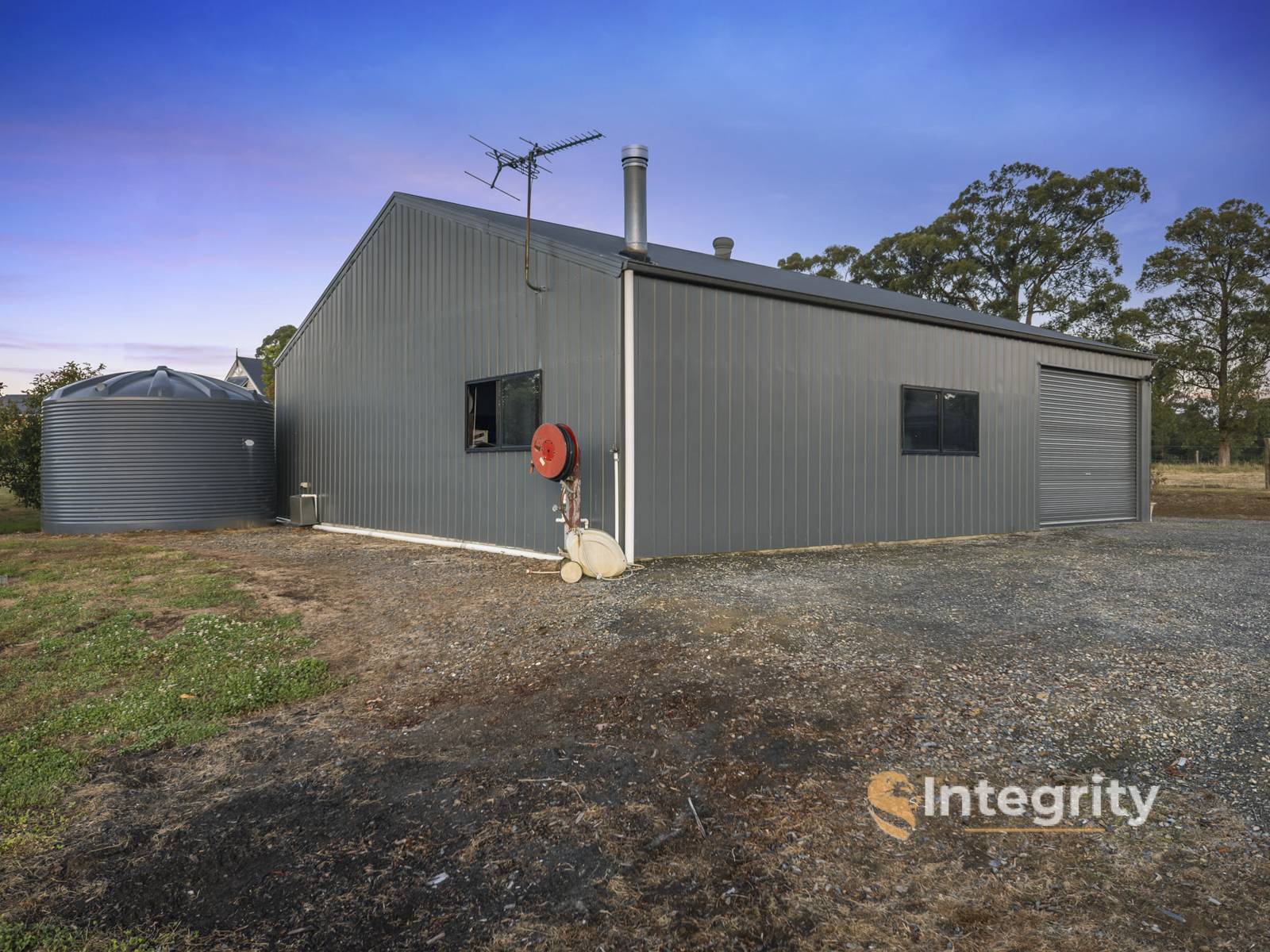 The solid timber kitchen features quality appliances and the recently updated laundry is fitted with new benchtop and tiles. Outside you'll find side and rear entertainment deckings overlooking well kept lawns and manicured gardens. The feature piece of the property is the enormous 12x11m machinery workshop shed equipped with a concrete base, power, lined walls and roof, Foxtel, hoist and 3 phase power. With 2 wood sheds, abundance of water storage, this home has been immaculately kept and only 16 years old. Don't miss out on the opportunity to make this luxurious property your new home!