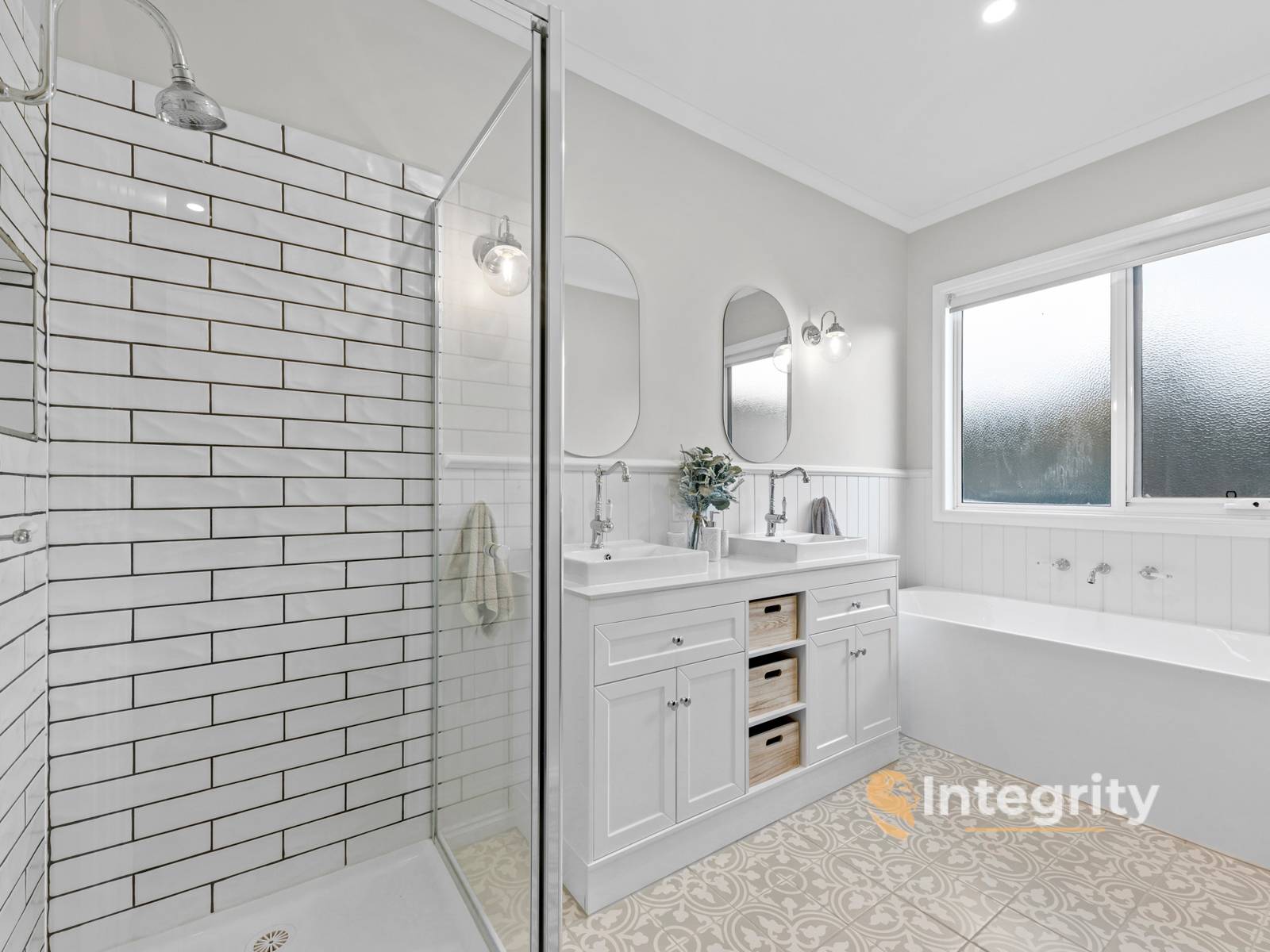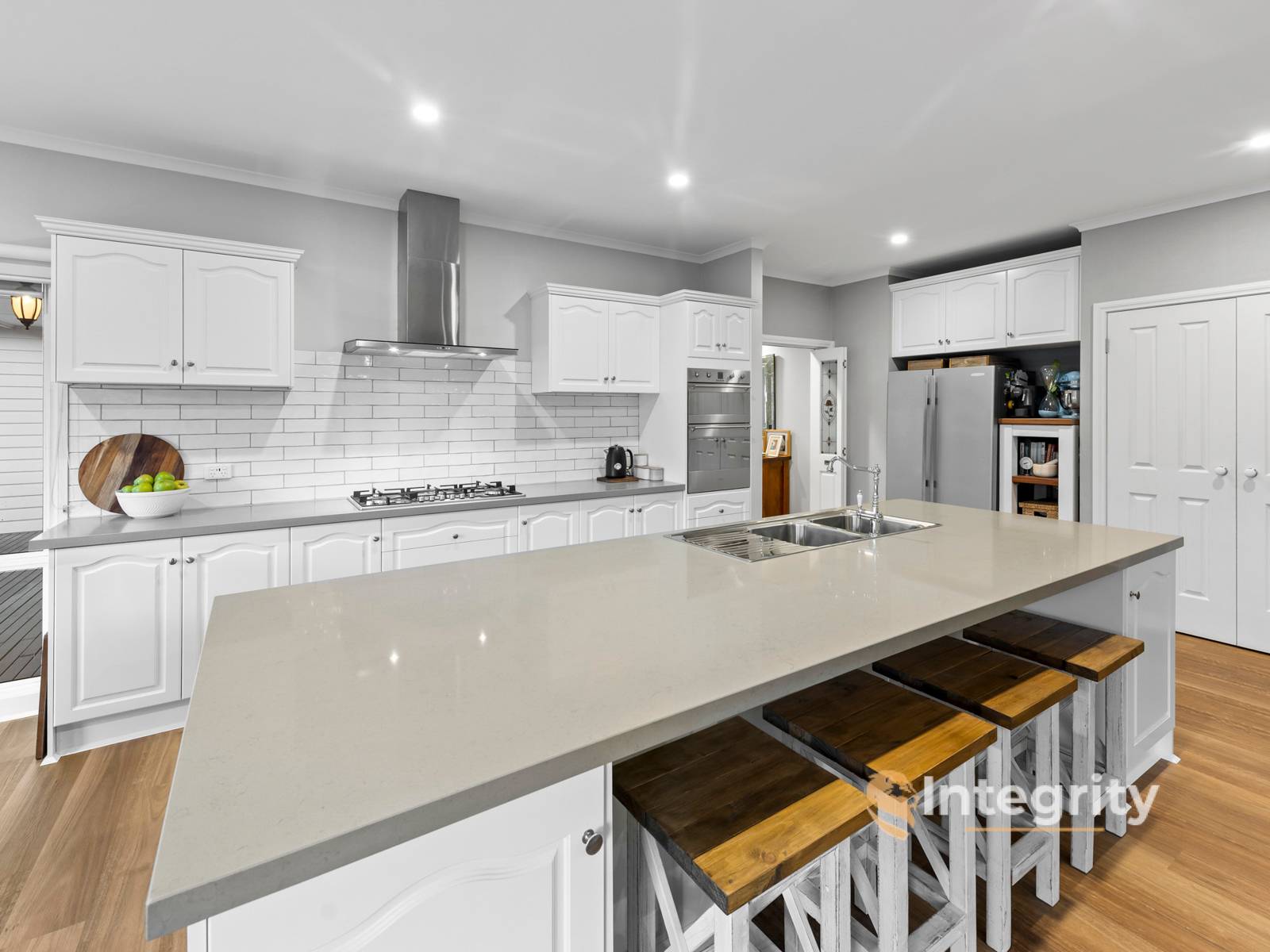 Upon entry you are greeted with 3 generous living spaces, open plan kitchen, dining/meals, featuring a huge island bench, double pantry, and quality appliances. The rear rumpus room has access to a bathroom and mudroom for the kids and the laundry has external access from the rear of the home. The spacious master bedroom provides the ultimate in comfort with large walk-in robe, and full en suite, while all bedrooms include built-in robes. Enjoy the comfort from a wood heater on those chilly winter nights as well as the convenience of 3 split systems. Some of the many features include decorative cornices and a large 21 panel 5kw solar panel system cutting down on energy costs.