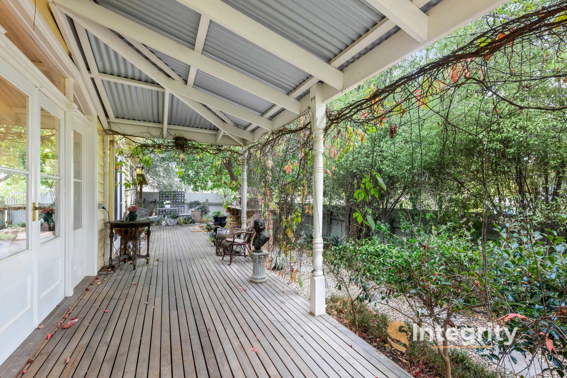 From the mudroom, exit out the rear door onto separate veranda and securely fenced garden. In this space, you'll also find a tool/storage shed and water tank.