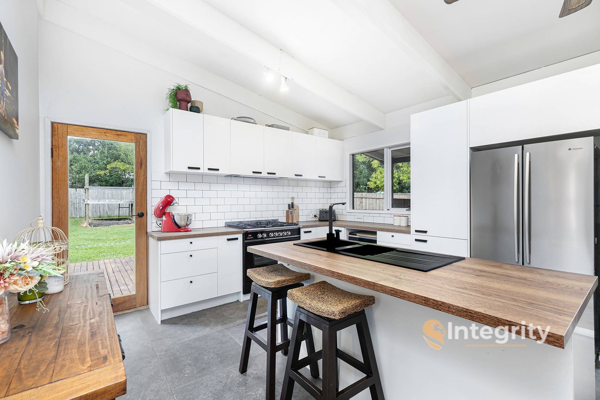 The spacious and stylish kitchen, lounge and dining areas flow seamlessly together on the lower level, providing an inviting and open-plan living space for the whole family to enjoy. The renovated kitchen features modern appliances, including a 900mm stove plus an integrated dishwasher, along with ample storage, making it the ideal space for preparing meals and entertaining guests on the easily accessible rear deck.