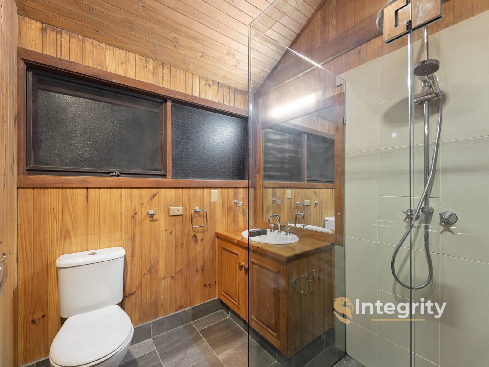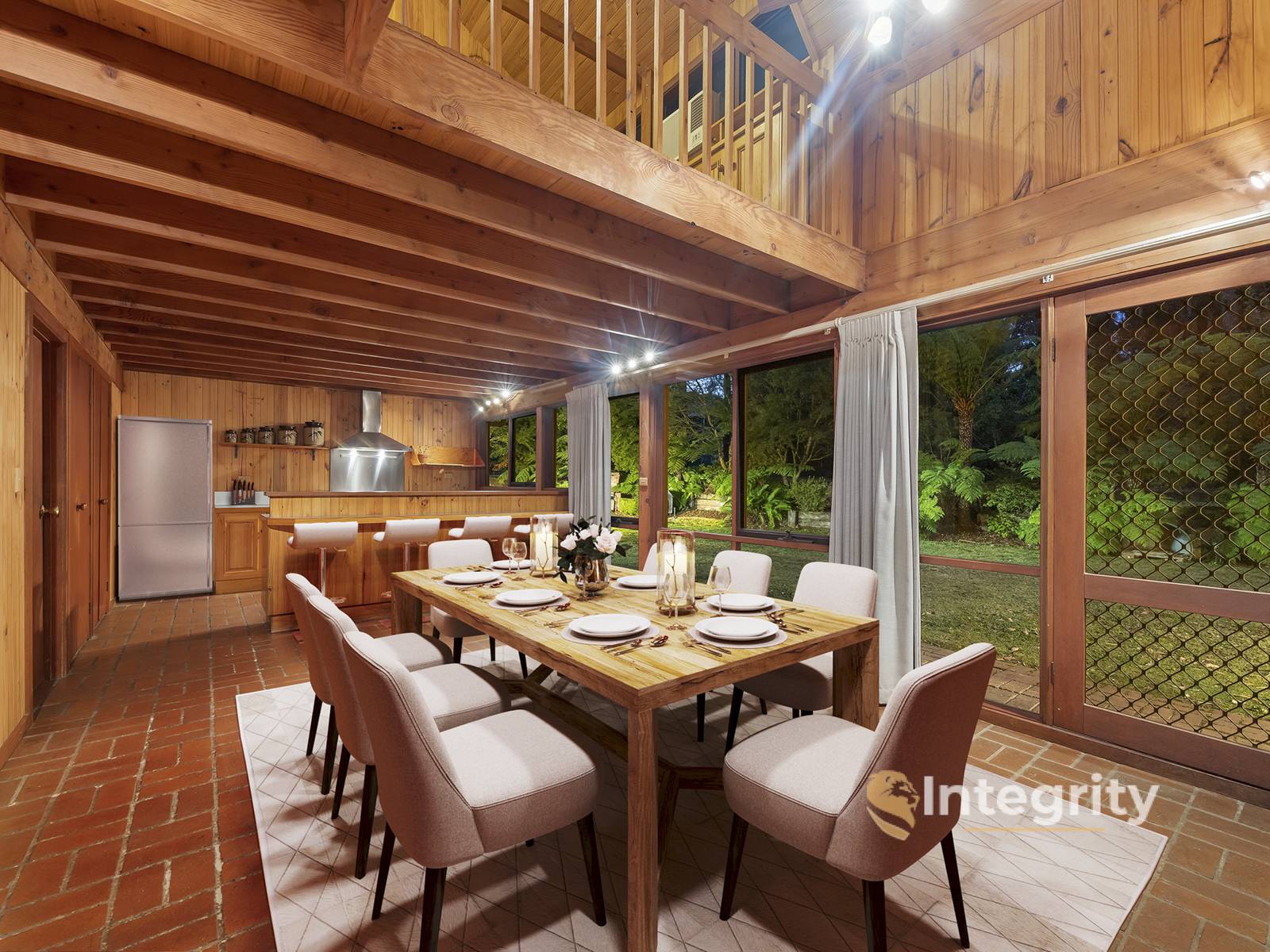 The home enjoys a large open kitchen / living / dining space with beautiful reclaimed brick floors. The home is heated and cooled with wood heating and split system air conditioning. Windows exposed to the natural light and beautiful bush surrounds fill the home with an ambience unique to the rural setting. In addition, the kitchen is spacious with servery-style countertop and plenty of bench space around the 900mm oven.
