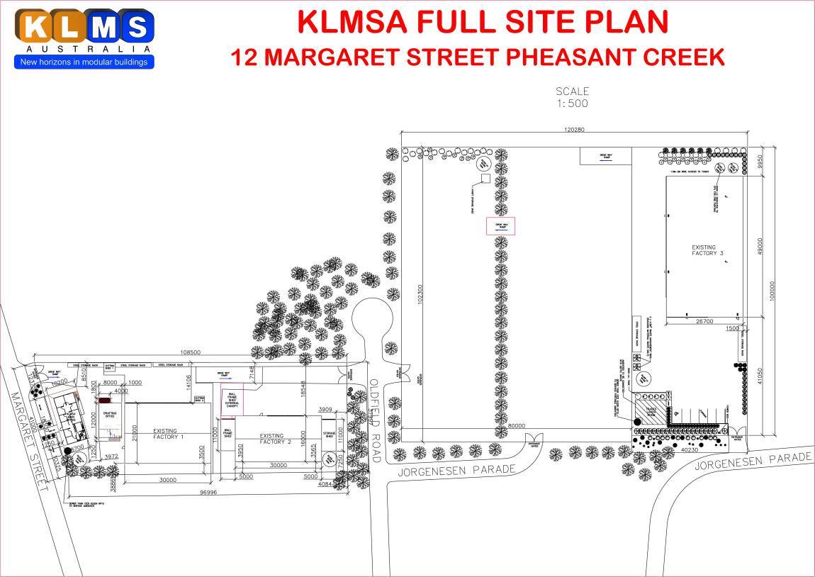 Culminating a mix of current site uses and home to long standing tenant KLMSA Modular it has catered to large modular production. There are 7 main buildings across the complex from an array of machinery sheds to office spaces and lunchrooms. The infrastructure is designed for a high production line end to end solution producing commercial material on an industrial scale. 3 bitumen road access points and fully fenced lots divided into 4 main sites comprise: