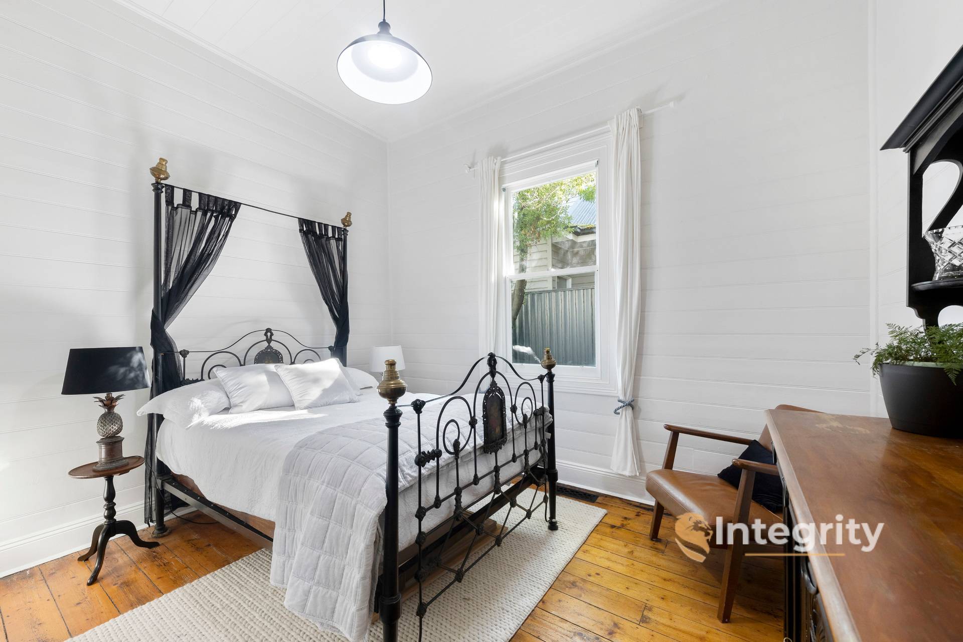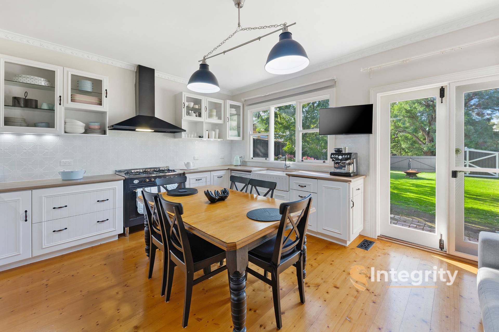 Upon entering the home, the hallway is flanked by 3 spacious bedrooms, a welcoming lounge room with gas log fire, master bedroom with ensuite and adjoining study/nursery, and the family bathroom with an exquisite clawfoot bath. Last but certainly not least is the renovated farmhouse style kitchen/meals area with a feature Ilve 5-burner stove and moulded tiled splashback.