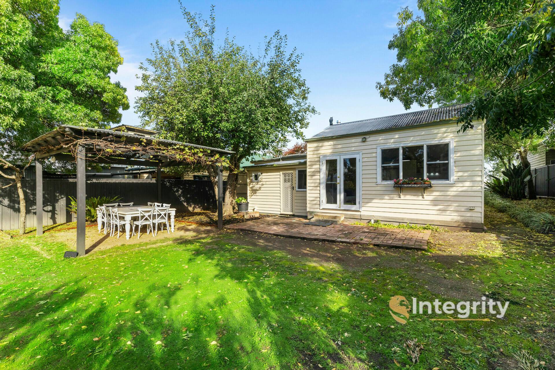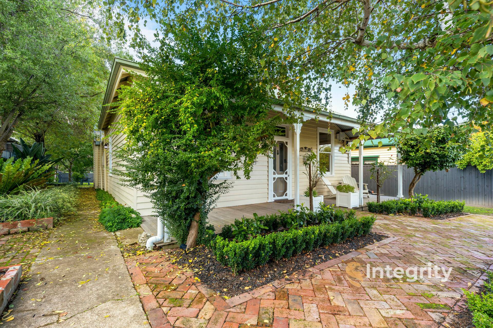 The original Blacksmith's cottage has been tastefully upgraded throughout the years to make it into a most comfortable and family friendly home. From its formal entrance behind the little picket fence, the herringbone paving leading up to the front entrance of the home and a welcoming front entrance door with leadlight feature.
