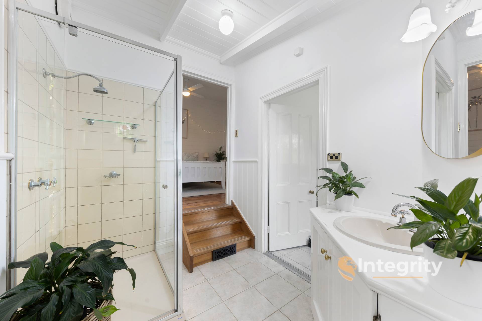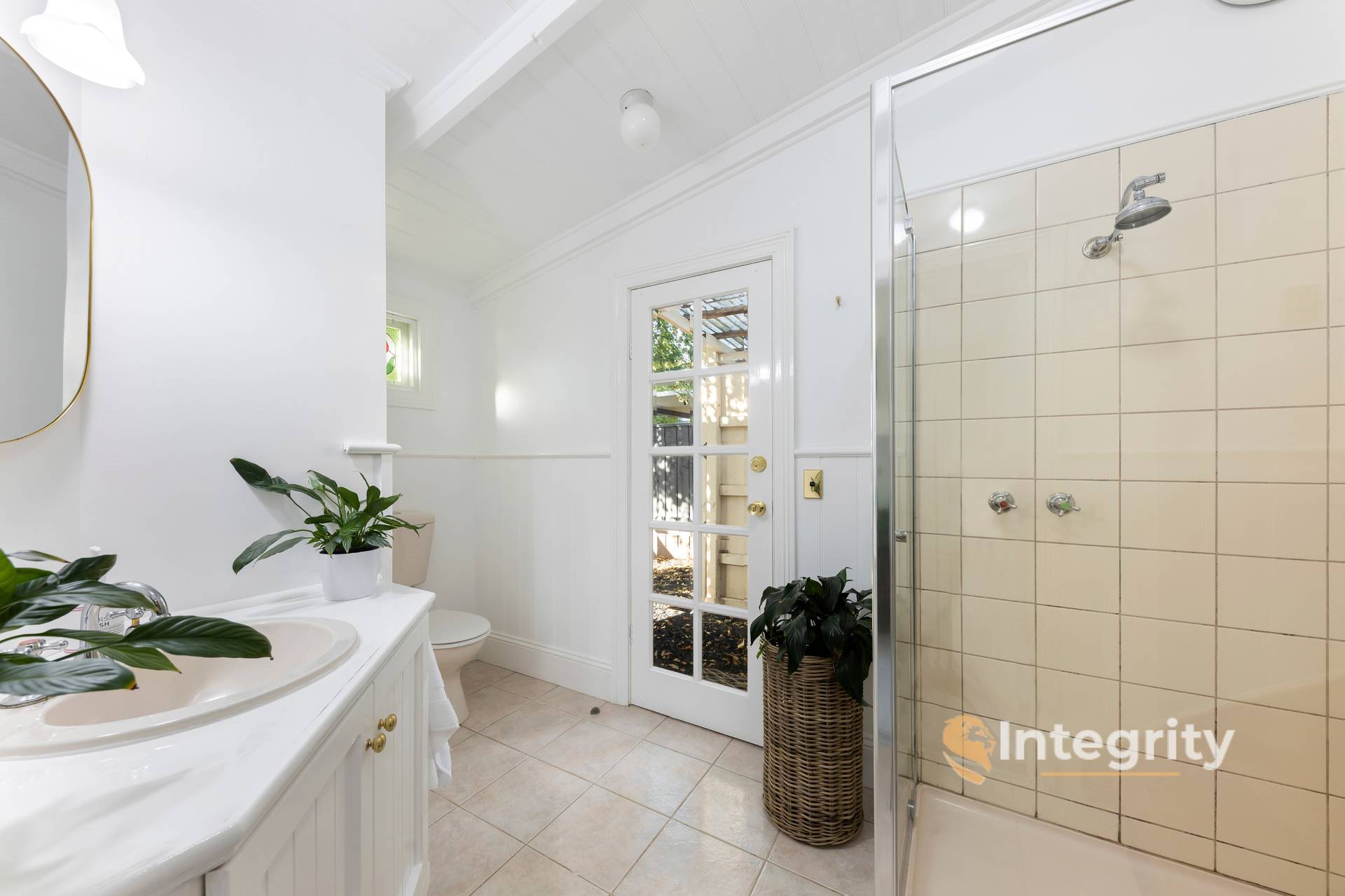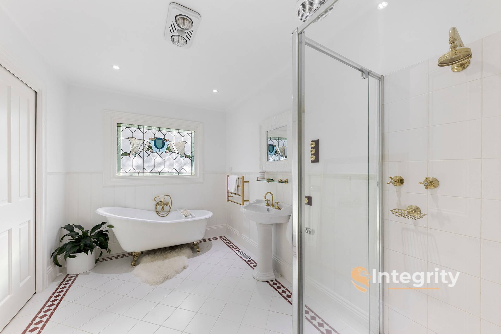 • Claw foot bath (slipper style), pedestal basin & walk in linen cupboard in bathroom