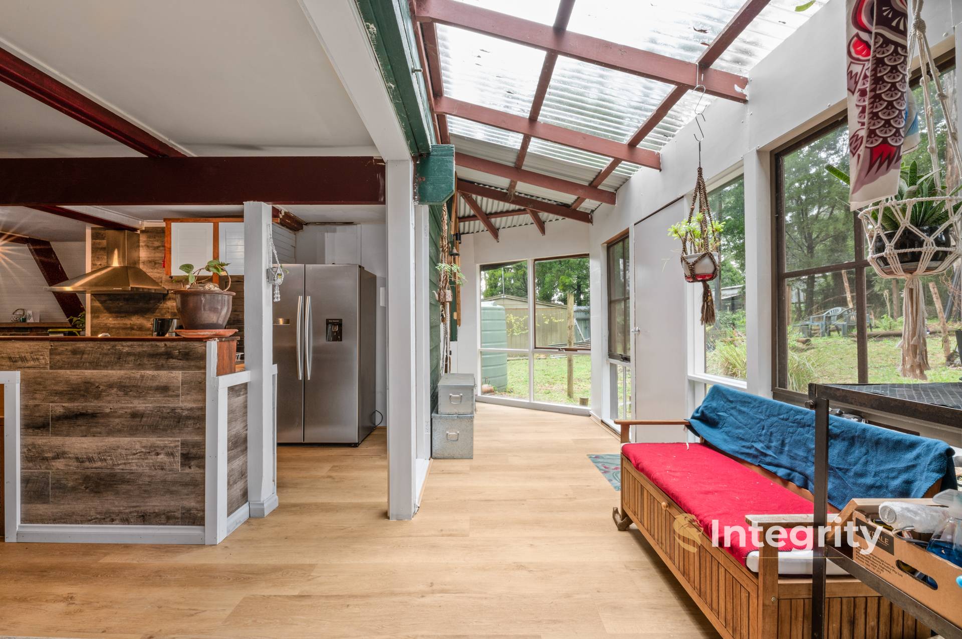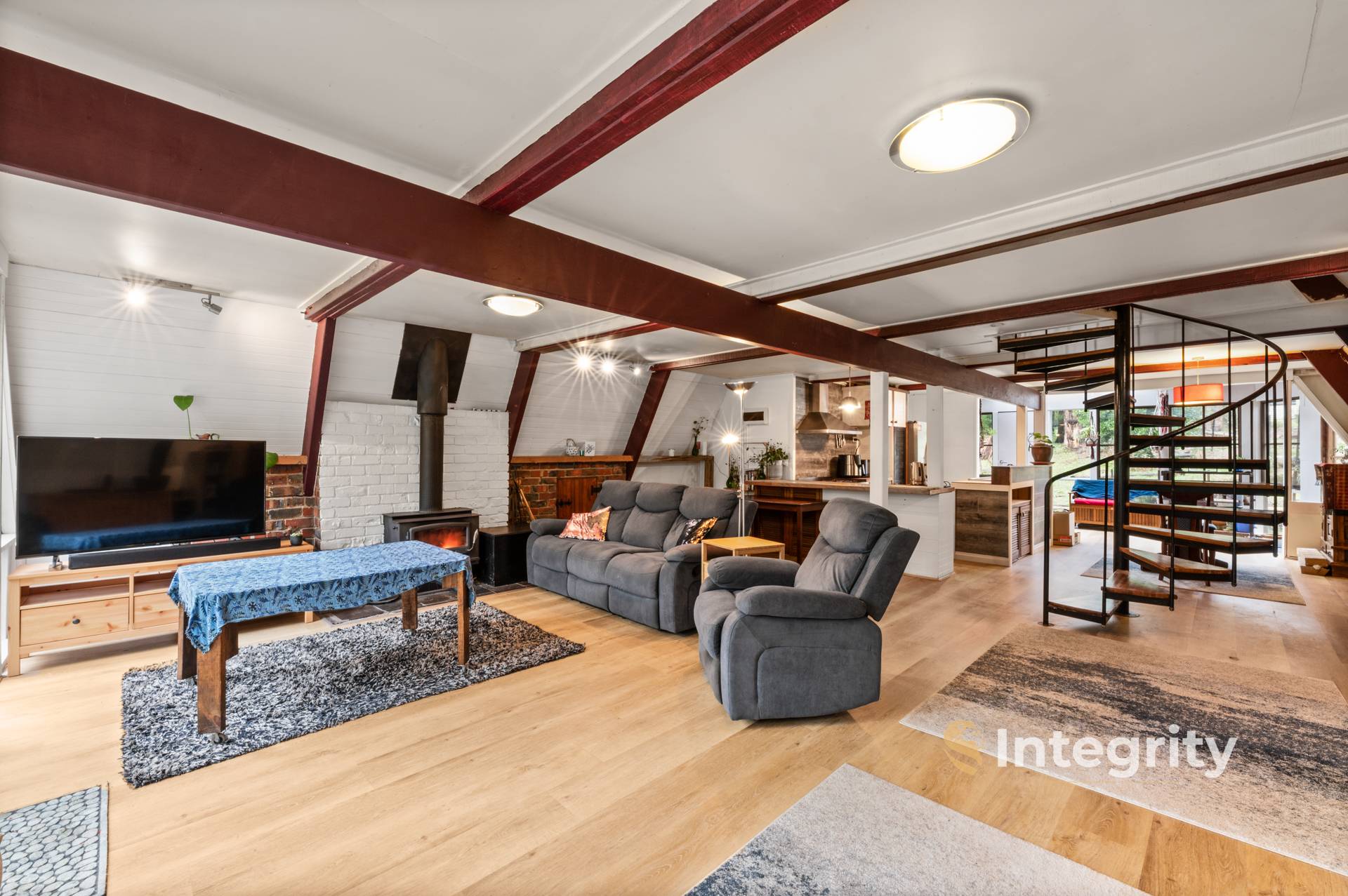 One of the highlights of this property is the exposed beams and timber floors, which add to the character and warmth of the home. The sunroom provides a serene spot to relax and enjoy the natural surroundings or perfect for home office and reading space. The main bathroom is located upstairs and features a shower, toilet, and vanity overlooking the surrounds.