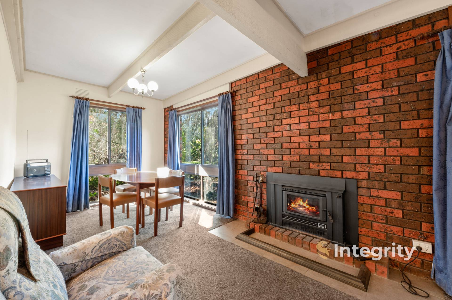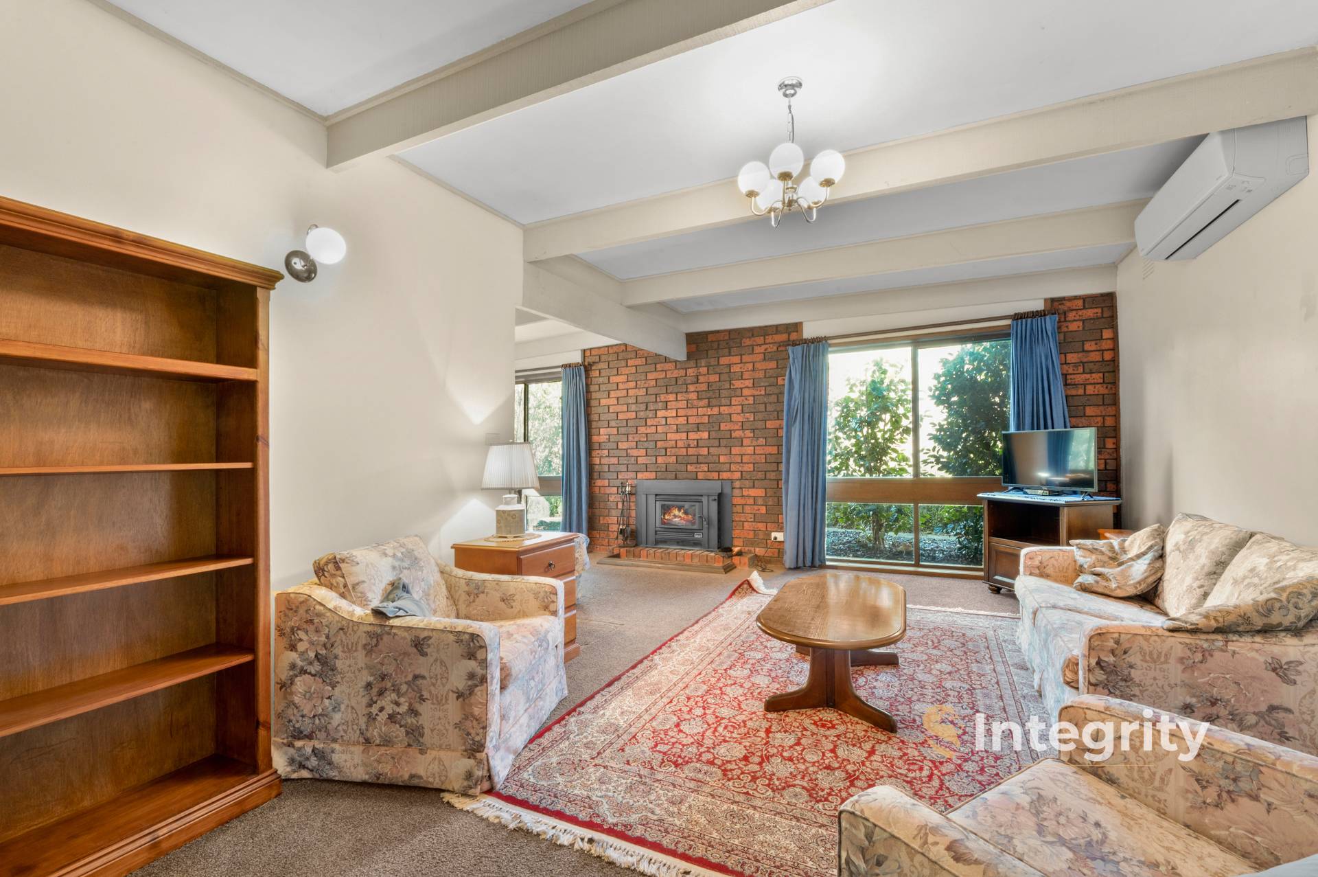 For year-round comfort, it features both a wood heater, a reverse cycle split system for heating and cooling and a dual solar panel hot water system. All bedrooms feature built-in robes and hallway with two storage/linen cupboards, providing ample storage space. The main bathroom is complete with a shower, bath, and vanity, ensuring functionality but enough space to update over time.