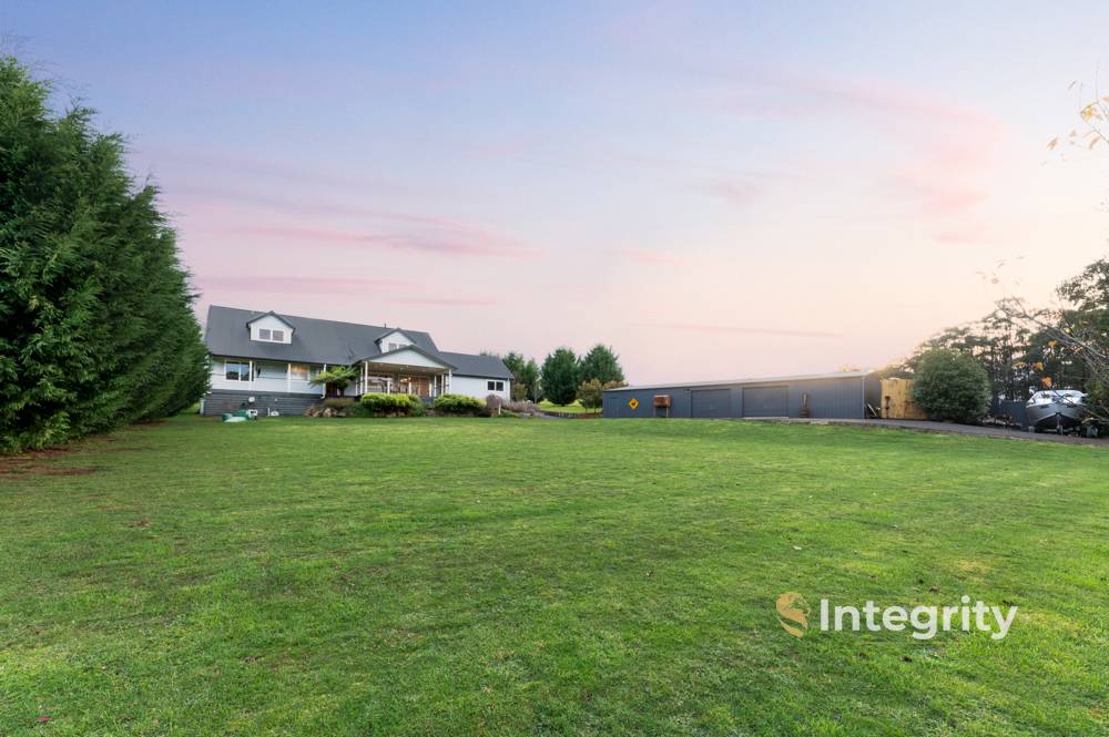 Externally the home really shines. Imagine entertaining on your enormous undercover decking overlooking your manicured yard and dam with a beautiful bush setting at the rear. Car accommodation and storage comprises double lockup garage with internal access and a generous 9m x 20m machinery shed with concrete base, power and 2 roller doors. The land has a perfect balance of mixed bush and cleared land with fenced yard and an abundance of camping spots and firewood collection at the rear.