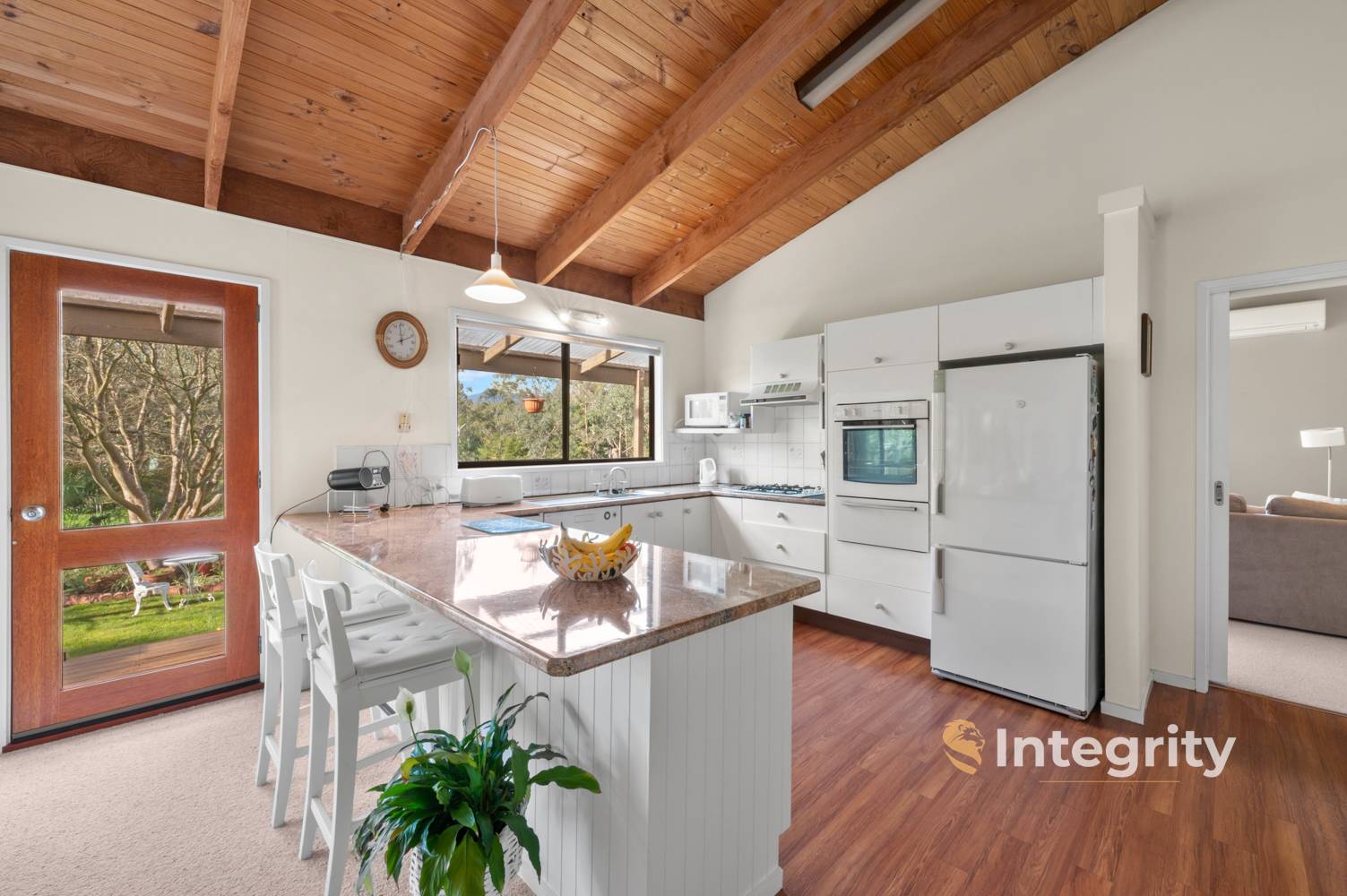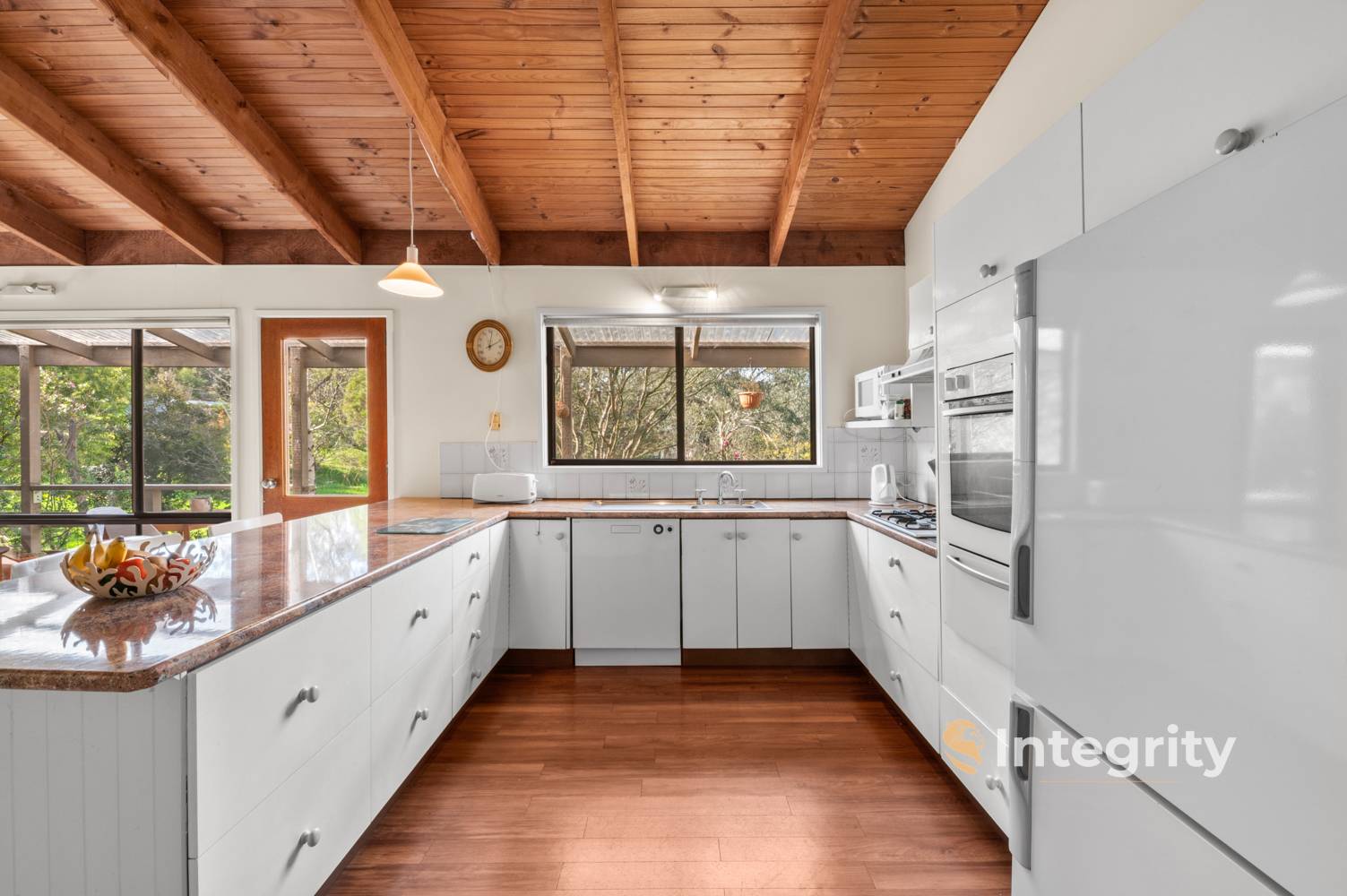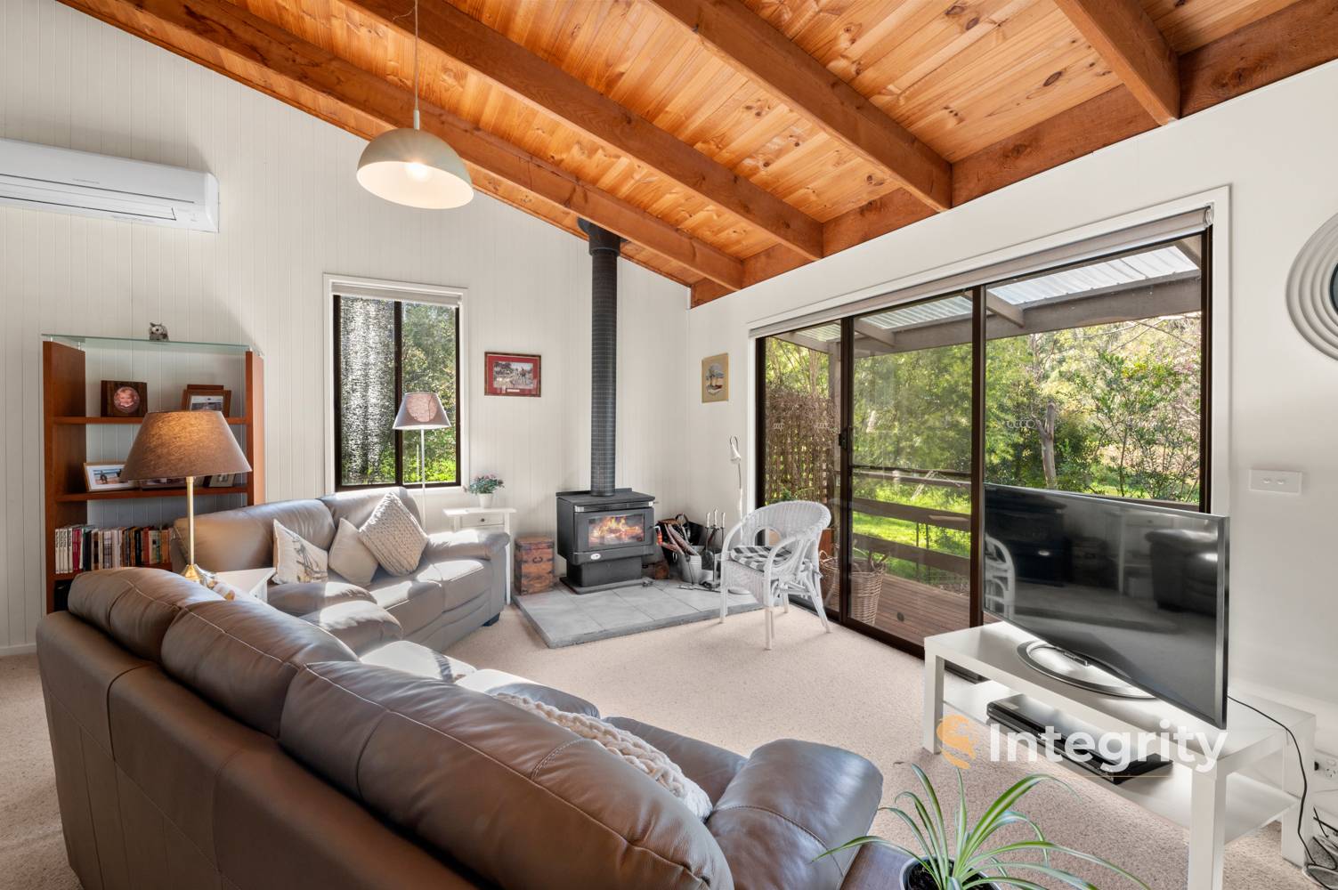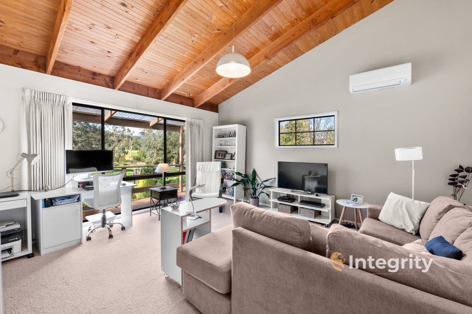 Featuring three bedrooms - two with built-in robes, one with a large cupboard, a semi-ensuite bathroom, two toilets, and two separate living areas, this home provides ample space for comfortable living and entertaining. The split-level design and soaring ceilings add character and a sense of space. Your comfort year-round is ensured with the two reverse-cycle split systems and the wood heater. External to the home you’ll find additional structures such as a 5.4 x 3.4m watertight shed with shelving, a small garden shed, and a chook pen.