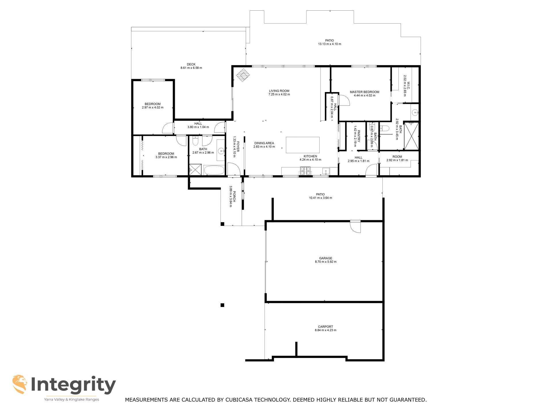 The open-plan living area is a welcoming space with built-in TV cabinetry and outdoor wired speakers, allowing you to enjoy your favourite music both indoors and on the outdoor undercover entertainment decking. This extends onto the open alfresco custom eco wood decking with exposed beams adding to its architectural charm. Adjacent to this area, a bluestone-paved outdoor space and vegetable garden adds versatility to your outdoor living options.