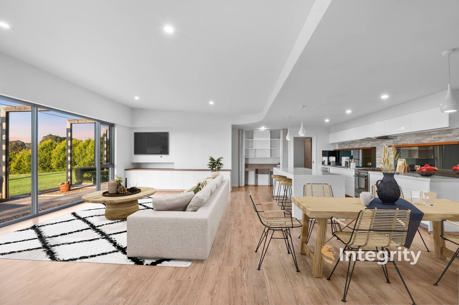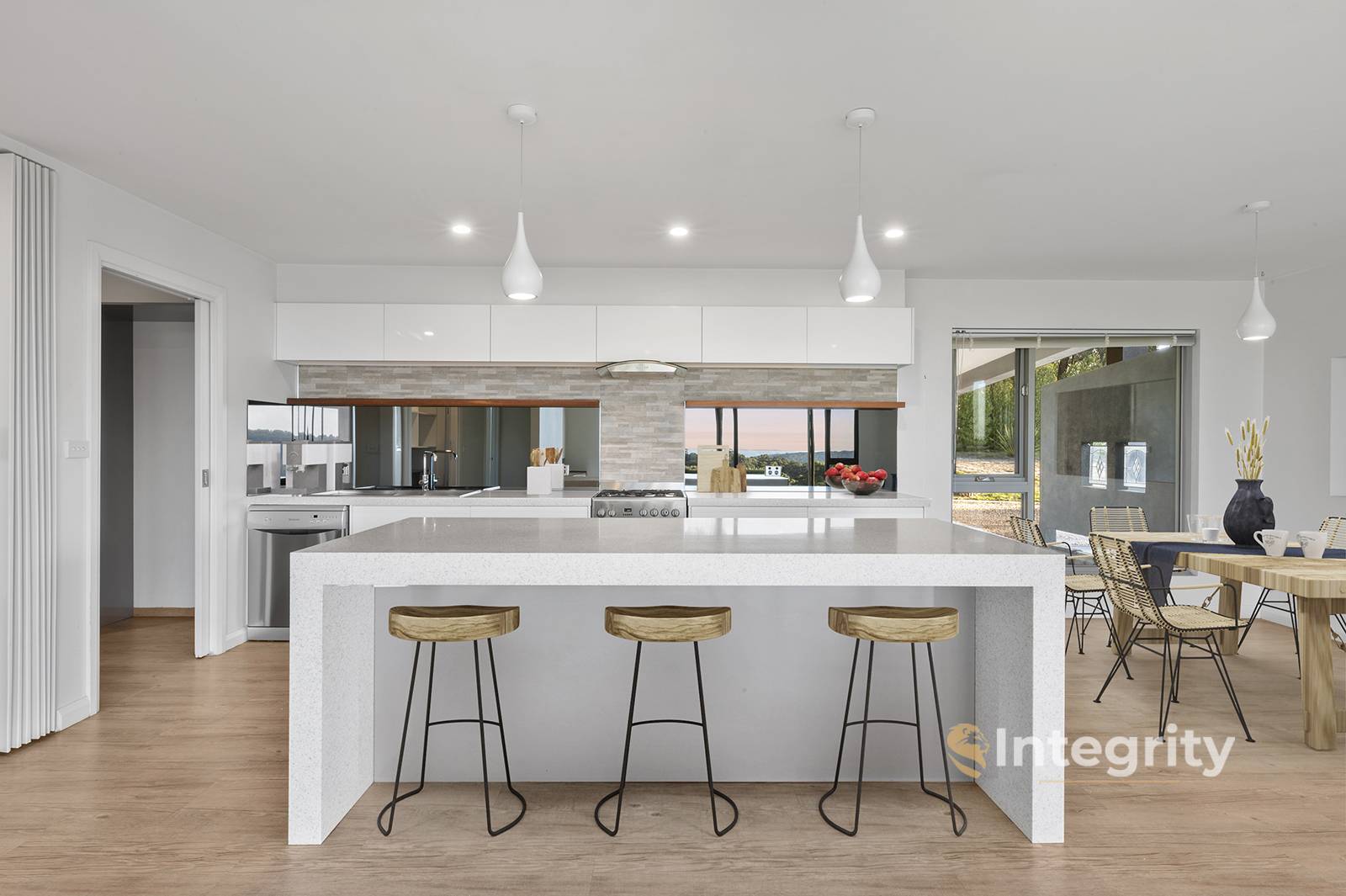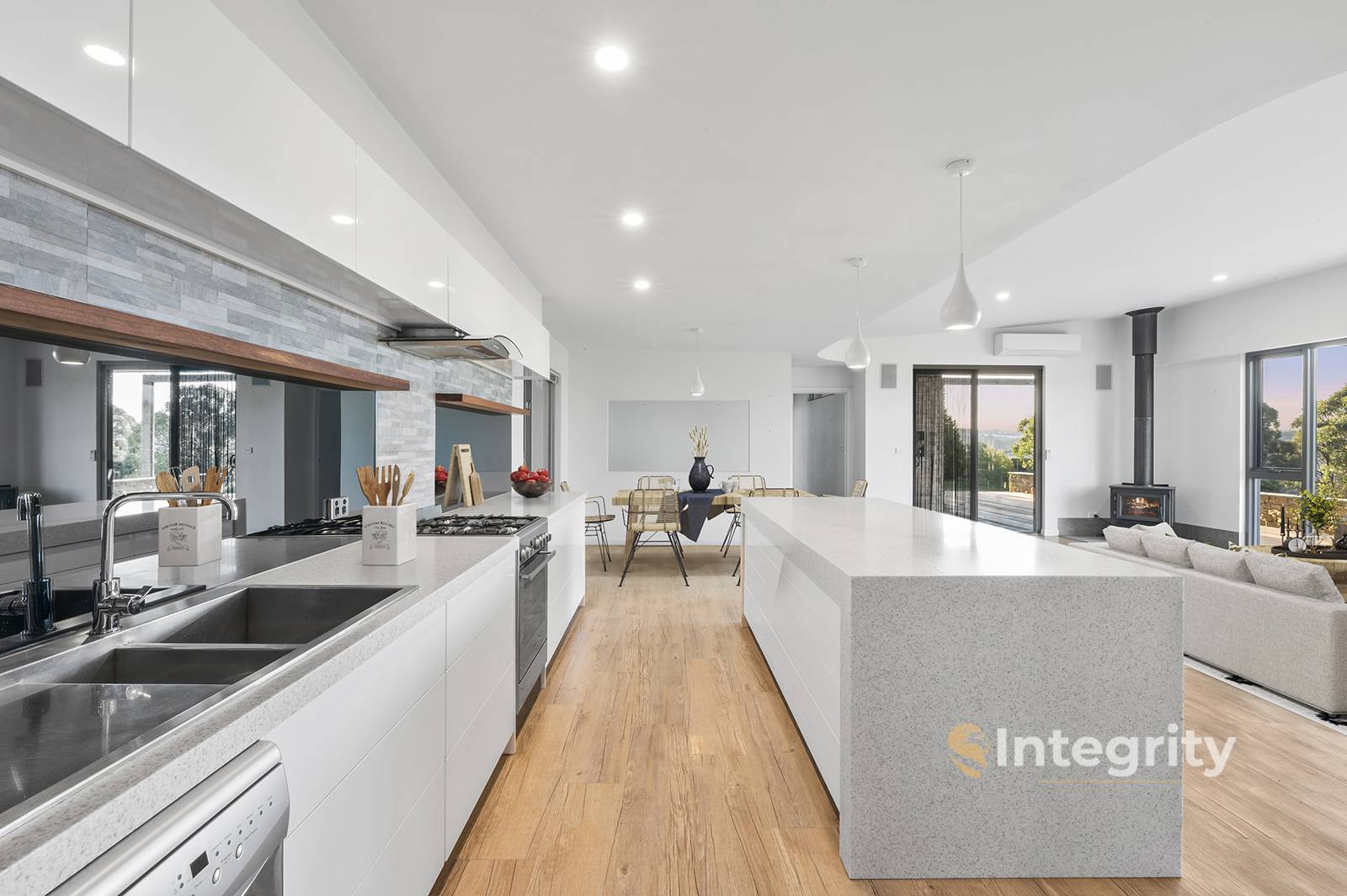This impressive residence offers contemporary luxury with minimalist design on a no through road surrounded by larger properties. Positioned perfectly North facing with an expansive view this property is a rare find. Consisting of 3 bedrooms, 2 bathrooms, open plan living, and laundry. There is ample space and storage for comfortable family living and the kitchen with stone benchtops also comes complete with a large walk in pantry and scullery neatly integrated into the service area of the home.