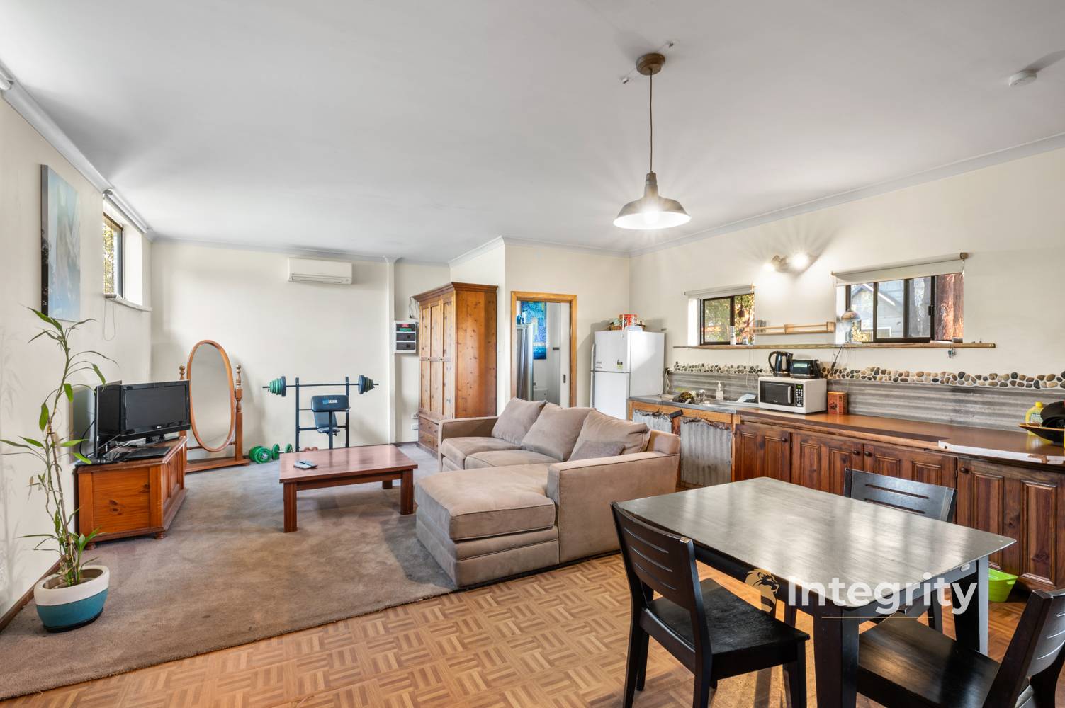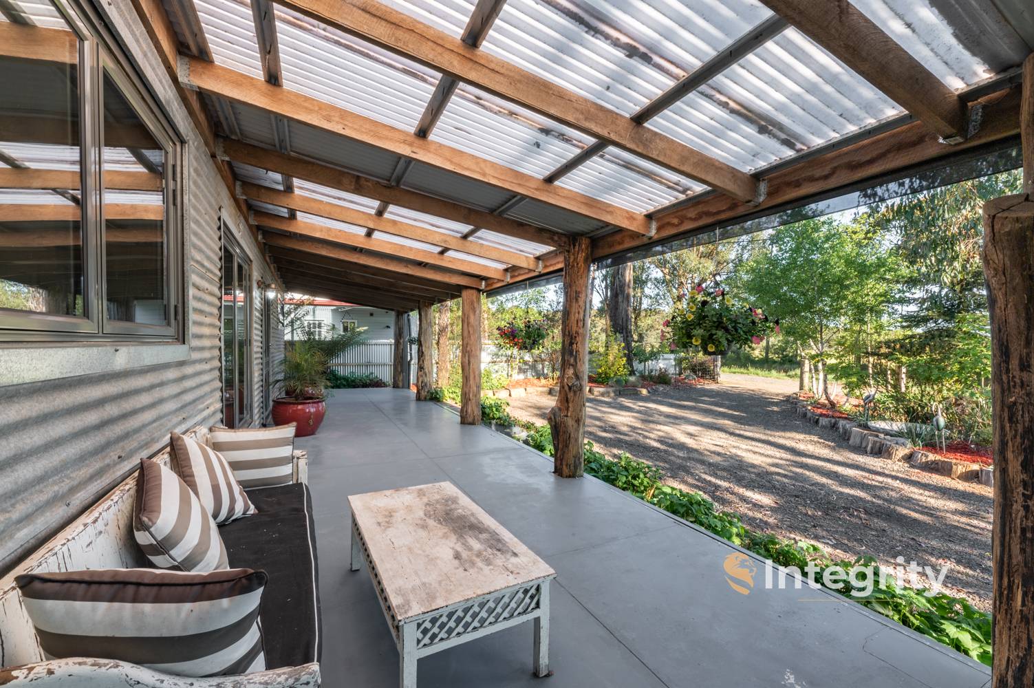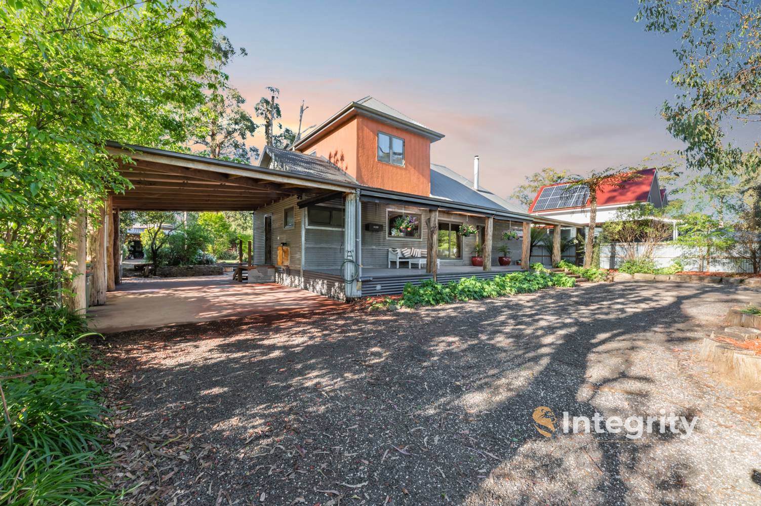 For those in search of extra space, there's a separate bungalow studio and workshop area. This versatile space comes complete with bathroom facility, kitchenette, split system and pot belly, making it ideal for guests, extended family, or as a home office/music studio. To accommodate vehicles, there's a double tandem carport with a concrete base, with additional wood storage area right next to the house.