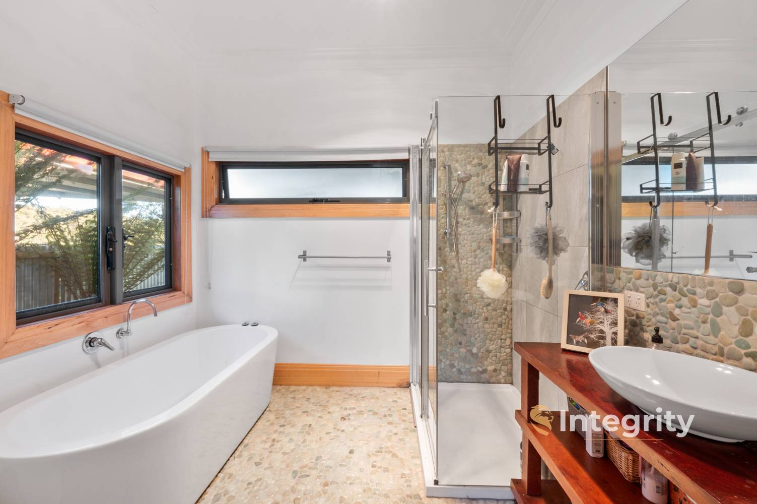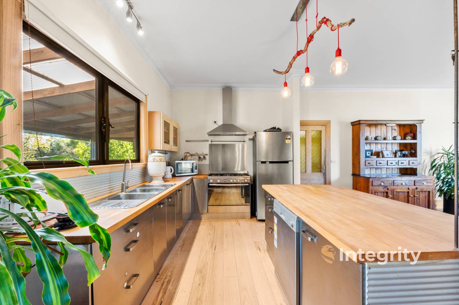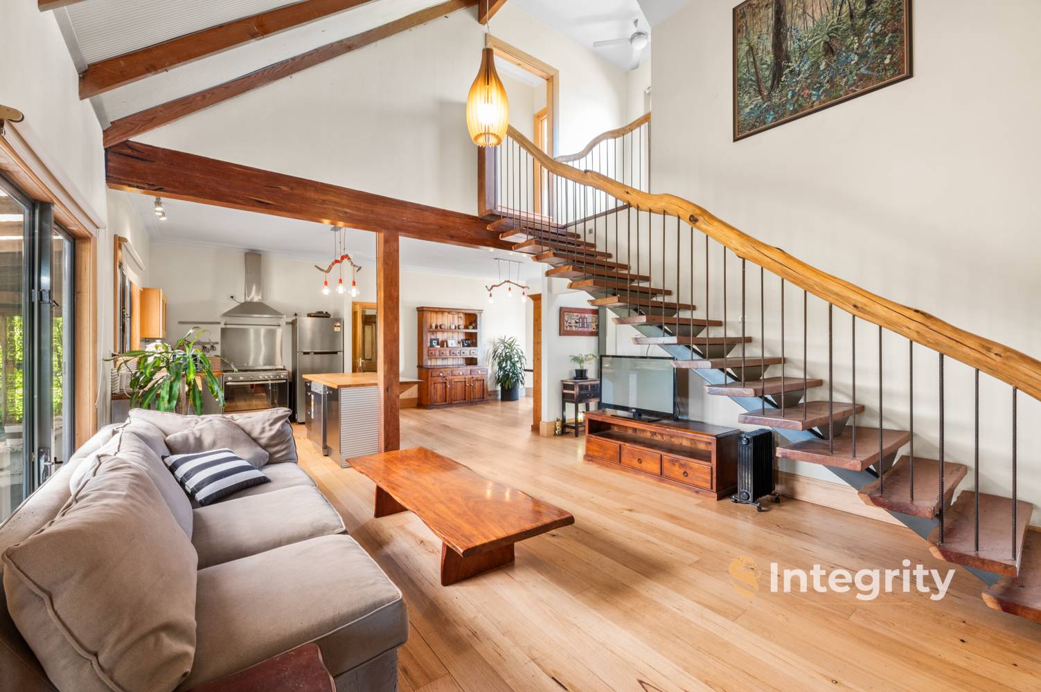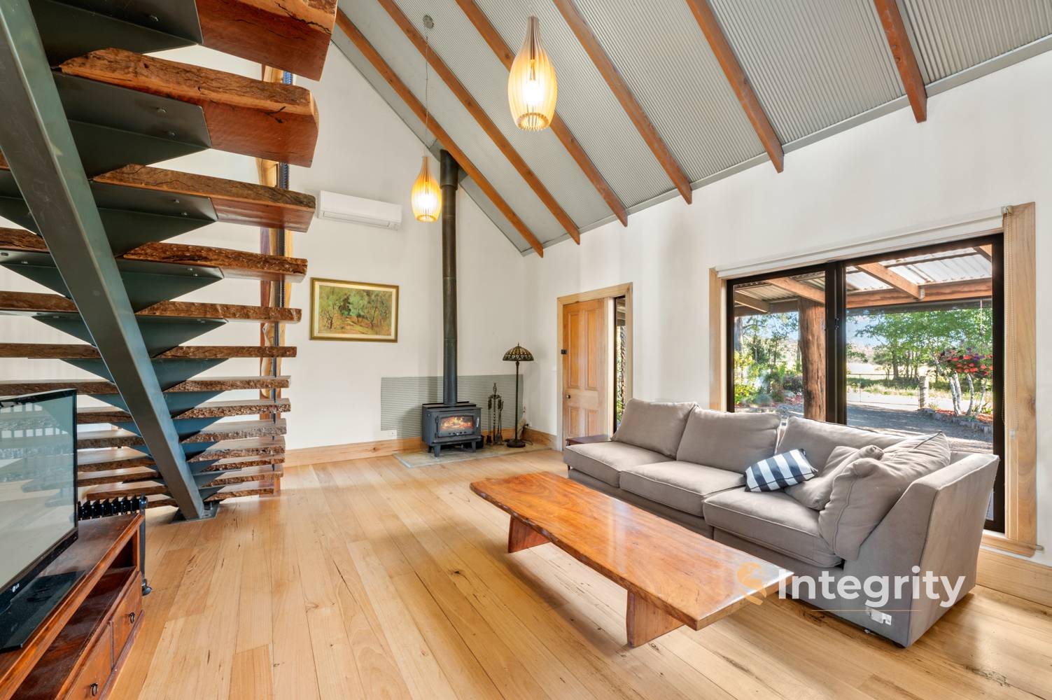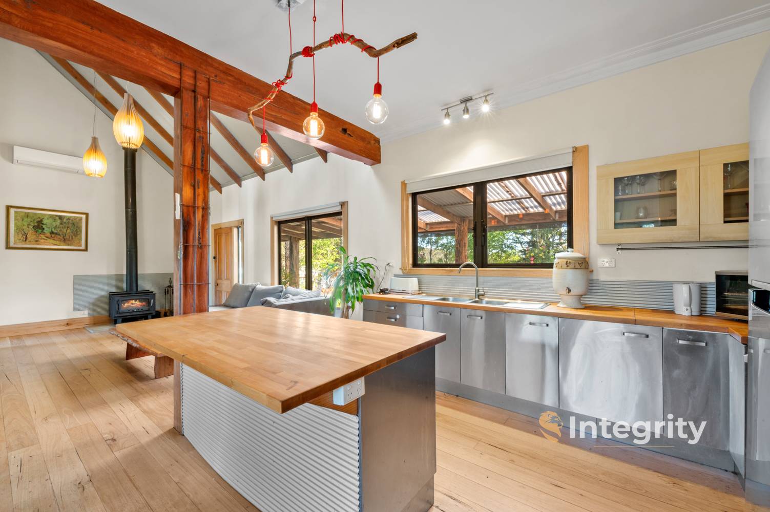 The spacious residence offers 4 bedrooms plus studio, 2 bathrooms, and the convenience of 3 toilets, including a powder room. The master bedroom is complete with a walk-in robe and en suite that features a freestanding bath and a generous 1200mm shower. The living space has a sense of warmth with the hand milled Mountain Ash timber floors and is comfortable throughout the year with wood heating and reverse cycle split system.