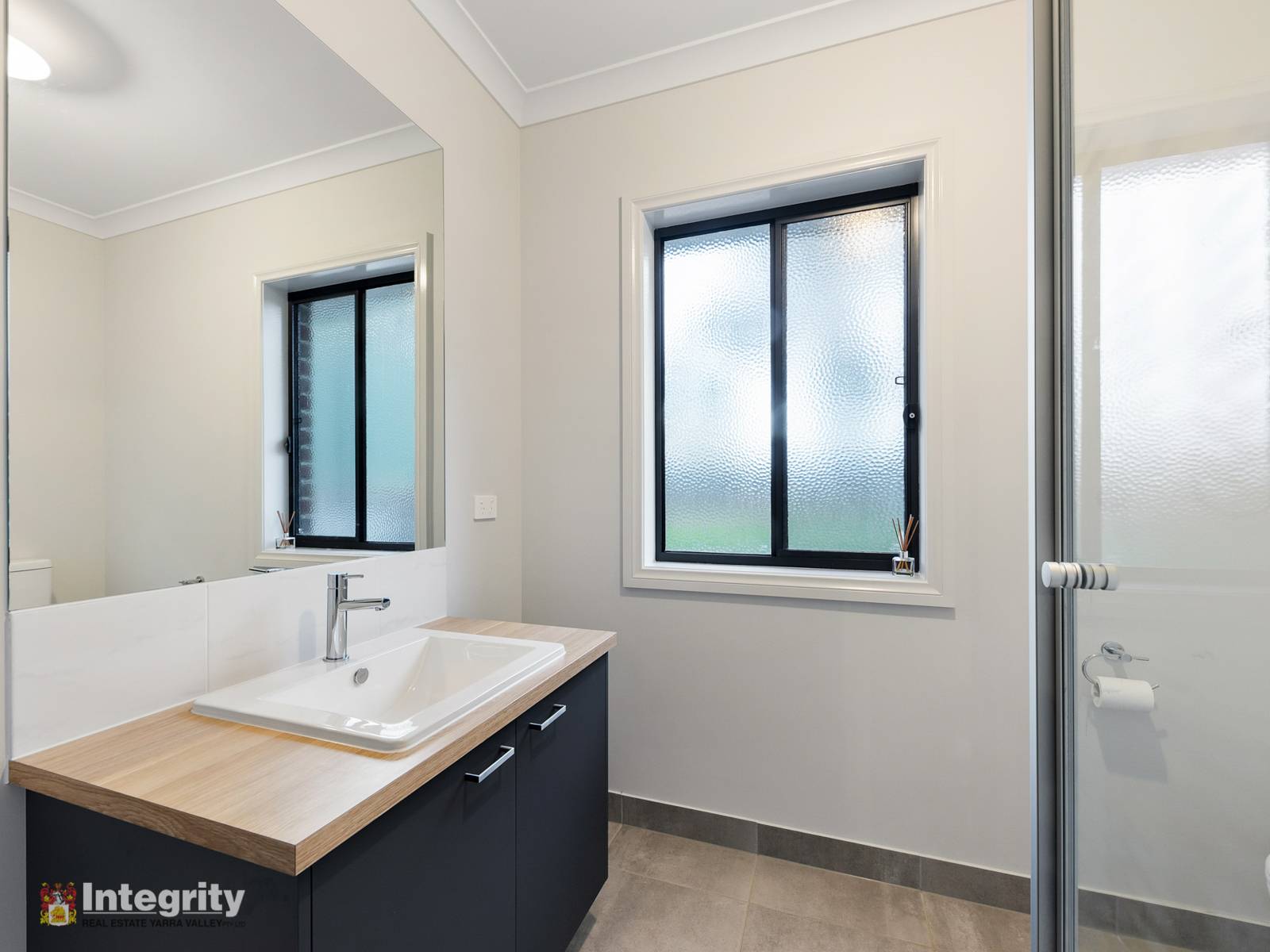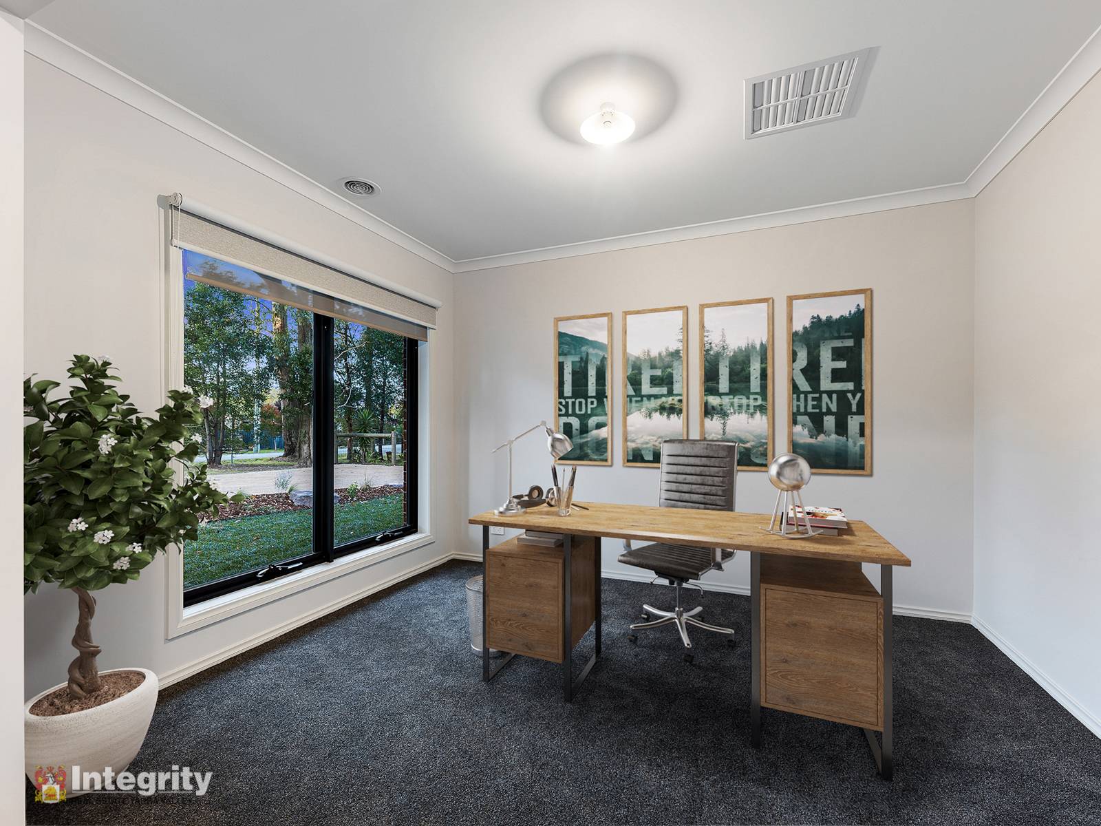 The recently built steel frame brick veneer home consists of 4 bedrooms plus study, 2 bathrooms, open plan kitchen/meals/living, and an additional sound proof media room for the kids to enjoy. The kitchen is bound to suit your needs with breakfast bar, high quality appliances, double pantry, and plumbed fridge. Escape to your new master suite where you will enjoy ample space and a generous en suite with large shower and walk-in robe. The property features ducted heating and evaporative cooling and the home is fully insulated keeping you comfortable all year round. Other notable features include 2.7m ceilings, built in robes in every bedroom, double linen cupboard, premium carpet and more.