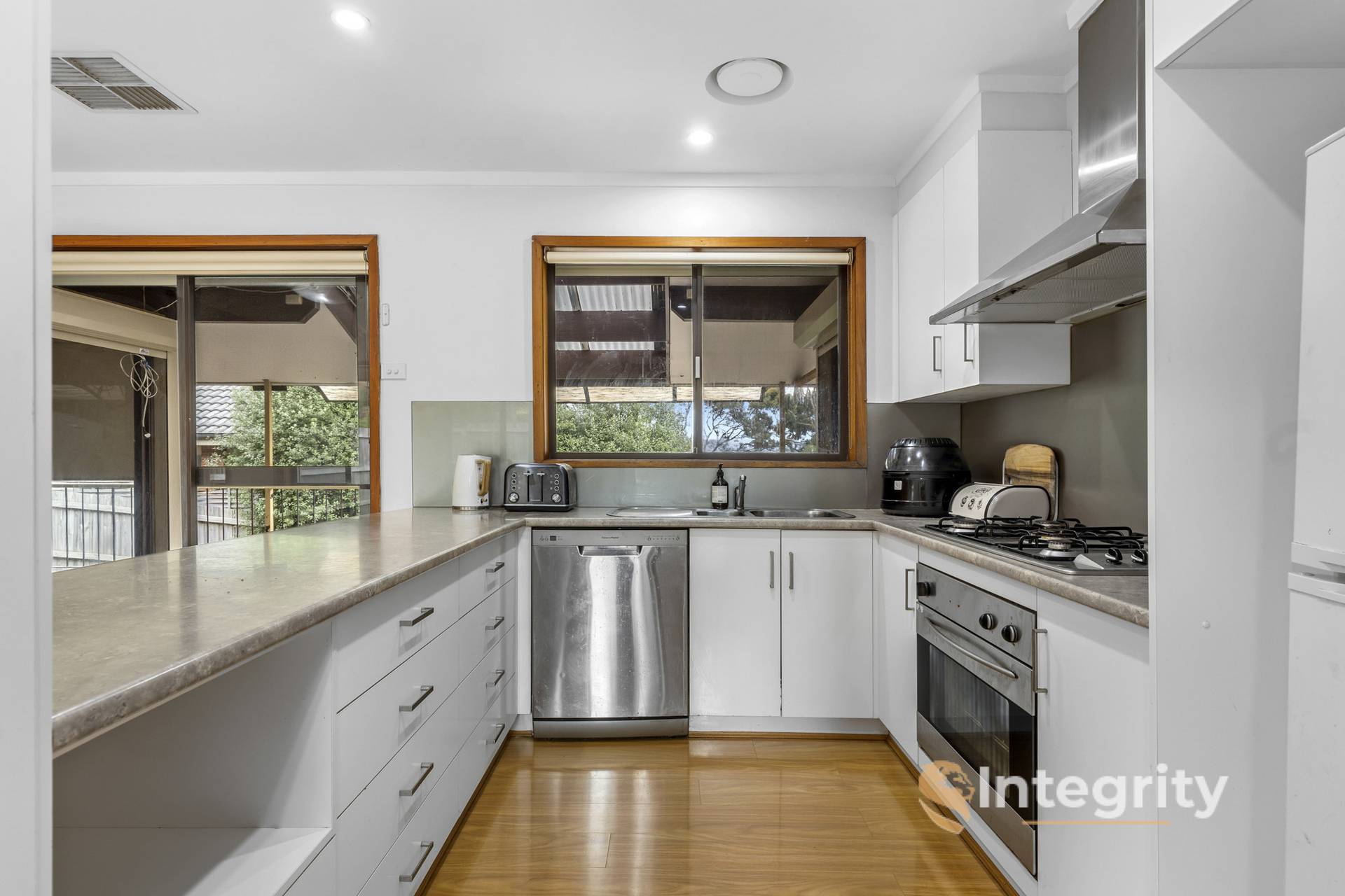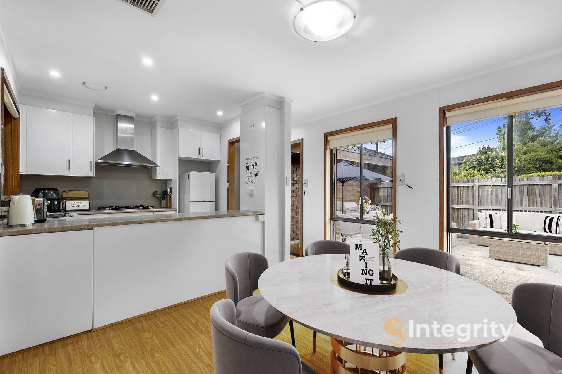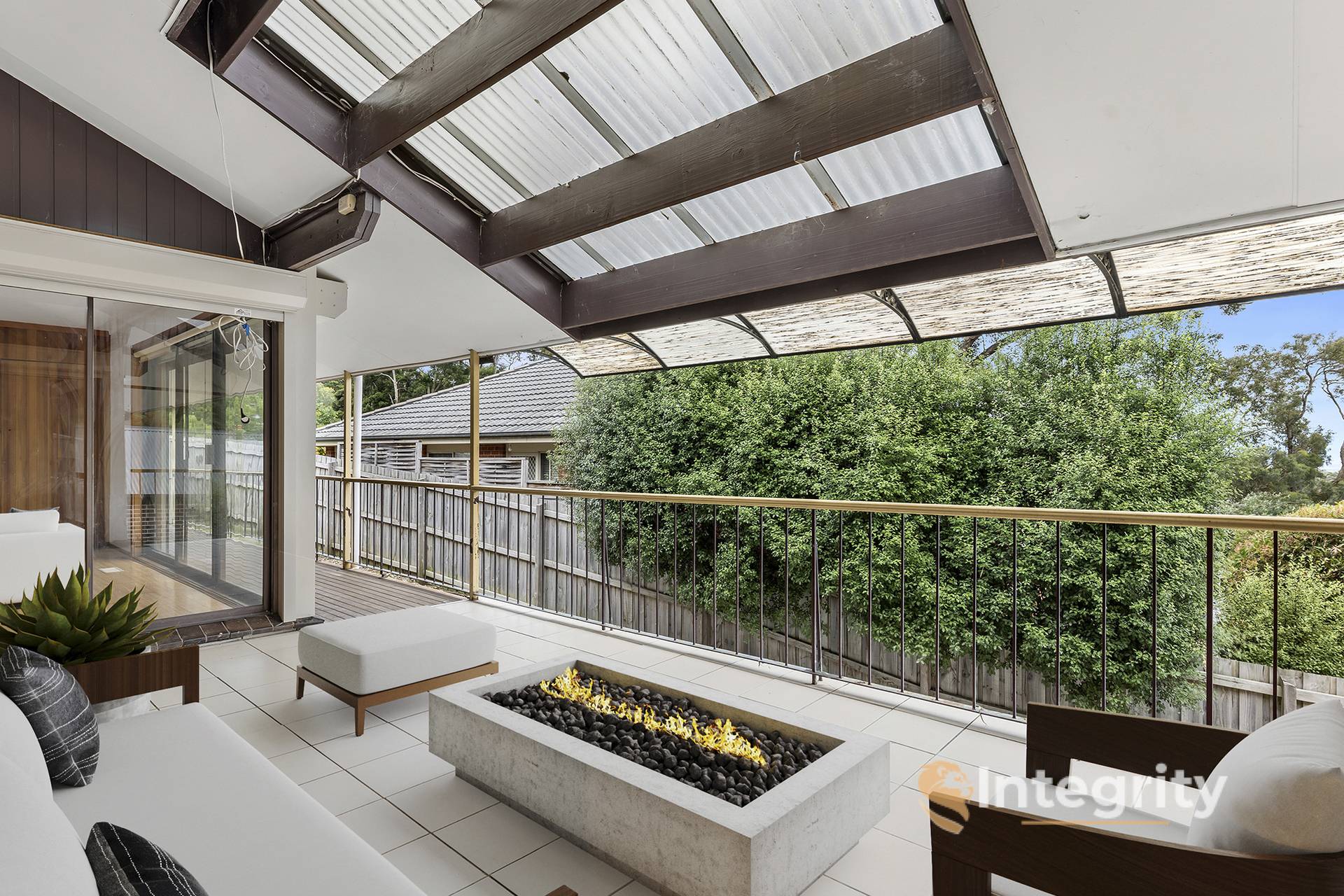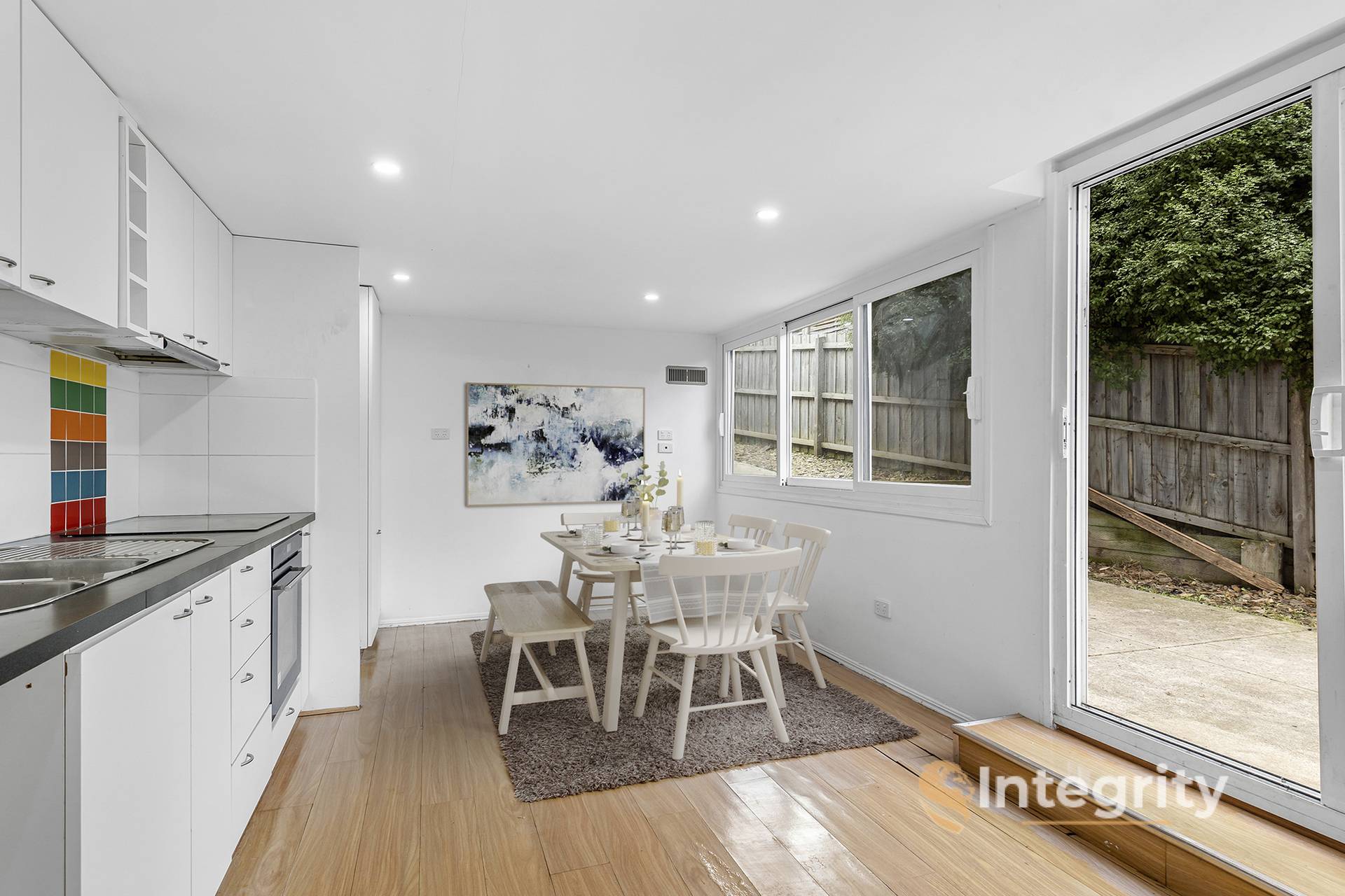 In keeping with this versatility, there is a concreted, fenced patio for entertaining or securing your furry friends. (The backyard is also fully fenced). Bringing your guests into the home, they will gravitate towards the tiled, covered balcony, wherefrom you can shout instructions down to your teenagers for cooking their own dinner: after all, they have a private kitchenette.