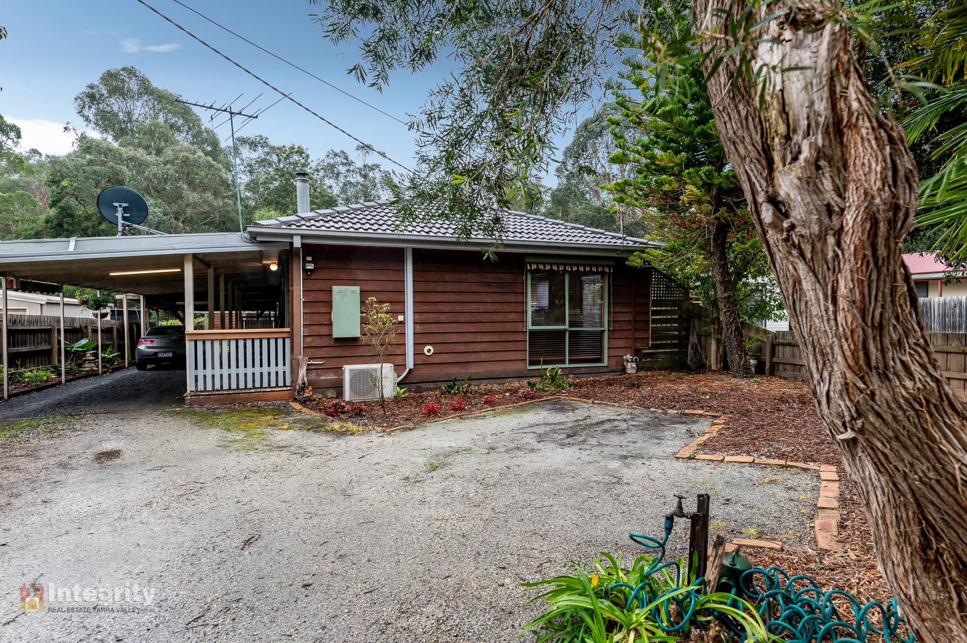 This Western Red Cedar home is an open plan design with cathedral ceilings in the living areas which creates a spacious and comfortable feeling. Year-round comfort is supplied by a wood heater, gas heater and a reverse cycle split system. All three bedrooms have built in robes. The kitchen has a good amount of cupboard space along with electric cooking.
