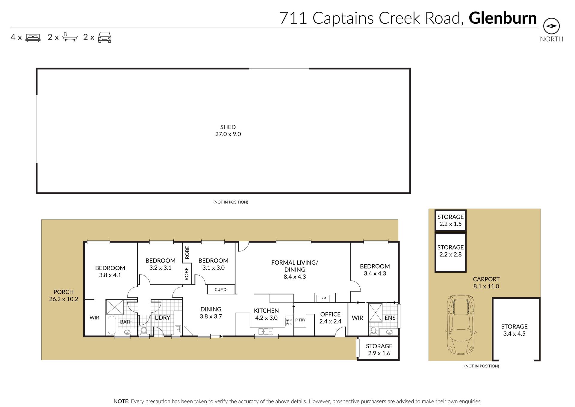 The property is divided into 4 paddocks plus house block, with Captains Creek running along its north boundary.