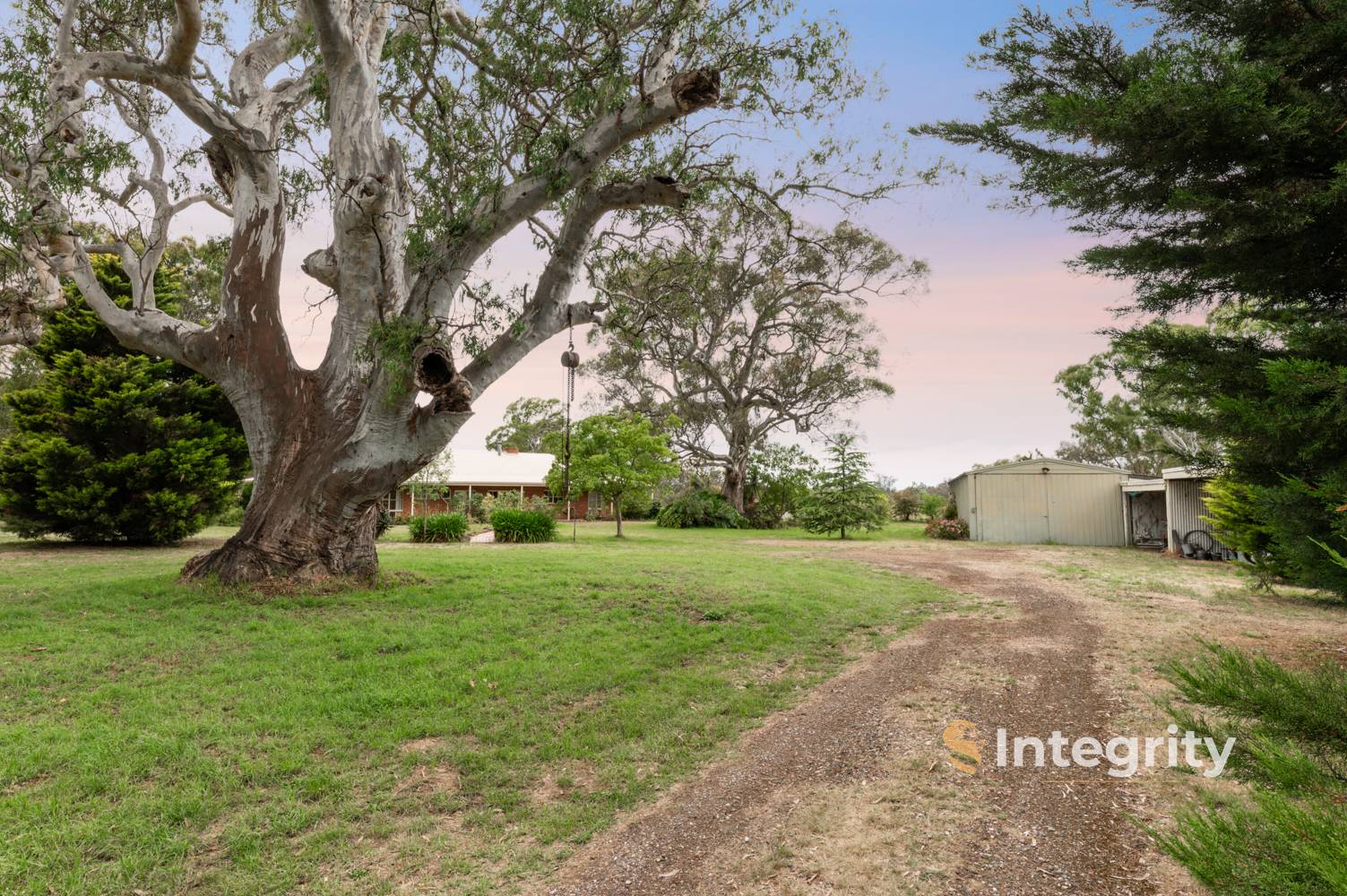 The sandy-coloured brick veneer, with its wrap-around veranda on all sides, adds a touch of classic charm to the residence. Surrounded by nature's bounty, this property boasts a fully fenced expanse with three paddocks, making it perfect for livestock or those with a penchant for wide open spaces. Car accommodation comprises a 6m x 14.5m machinery shed with concrete base and power, a 4 car carport, large 8m x 9m hay and stable shed, secondary hay shed with stock feeder, wood shed, garden shed and various outbuildings.