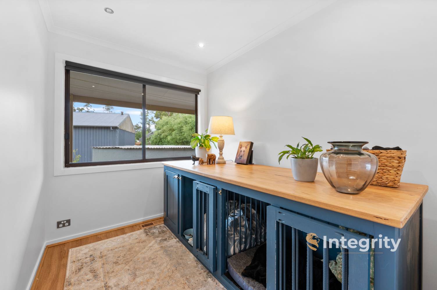 Consisting of 3 bedrooms plus study, 2 bathrooms, kitchen, meals area, lounge room, living/rumpus room and laundry. As you step inside, the warmth of the wood heater and the embrace of ducted heating create a cozy ambiance throughout. There is also 2 reverse cycle spit systems for all seasons. Other features include kitchen adorned with stone benchtops and walk-in pantry, built-in robes to all bedrooms, main bathroom with floor-to-ceiling tiles and luxurious freestanding bath, master with full en suite and walk in robe, and LED lighting throughout.