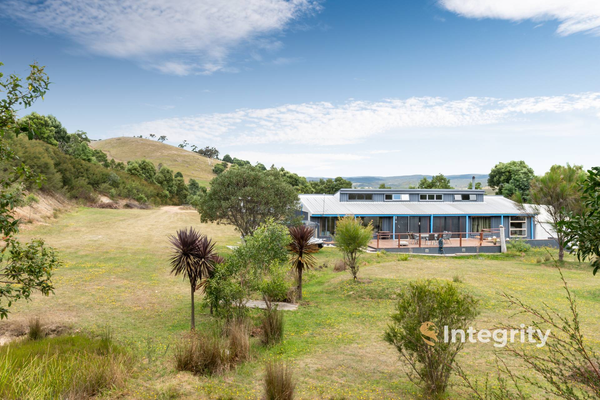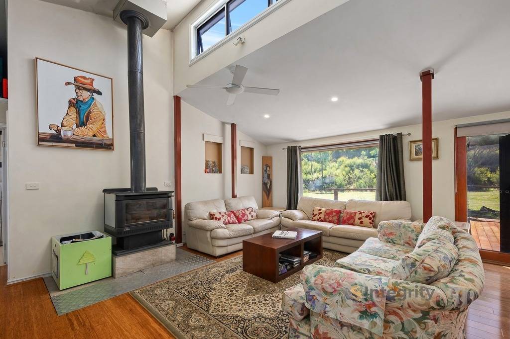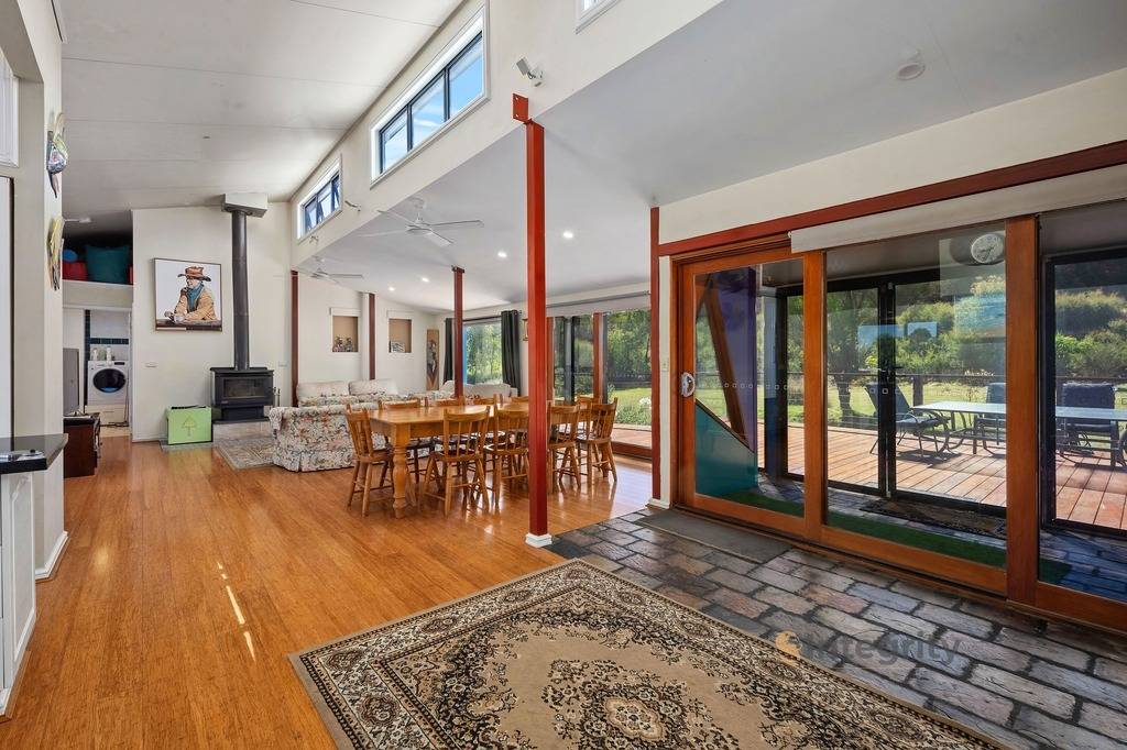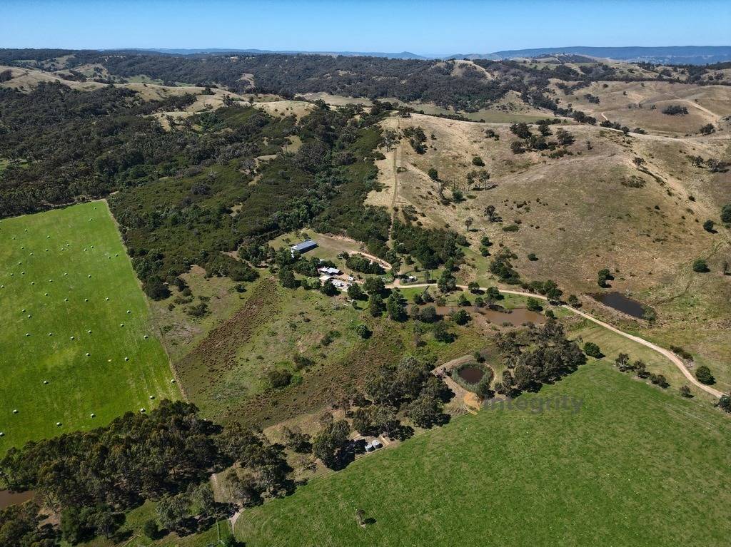 The land features 4x4 access around the entire property, with 4 dams, two veggie gardens, fruit trees, a cattle yard (used to be a chicken run), and extensive walking trails up to the apex. From there you have stunning views of the surrounding hills and beautiful native bushland as for as the eye can see.
