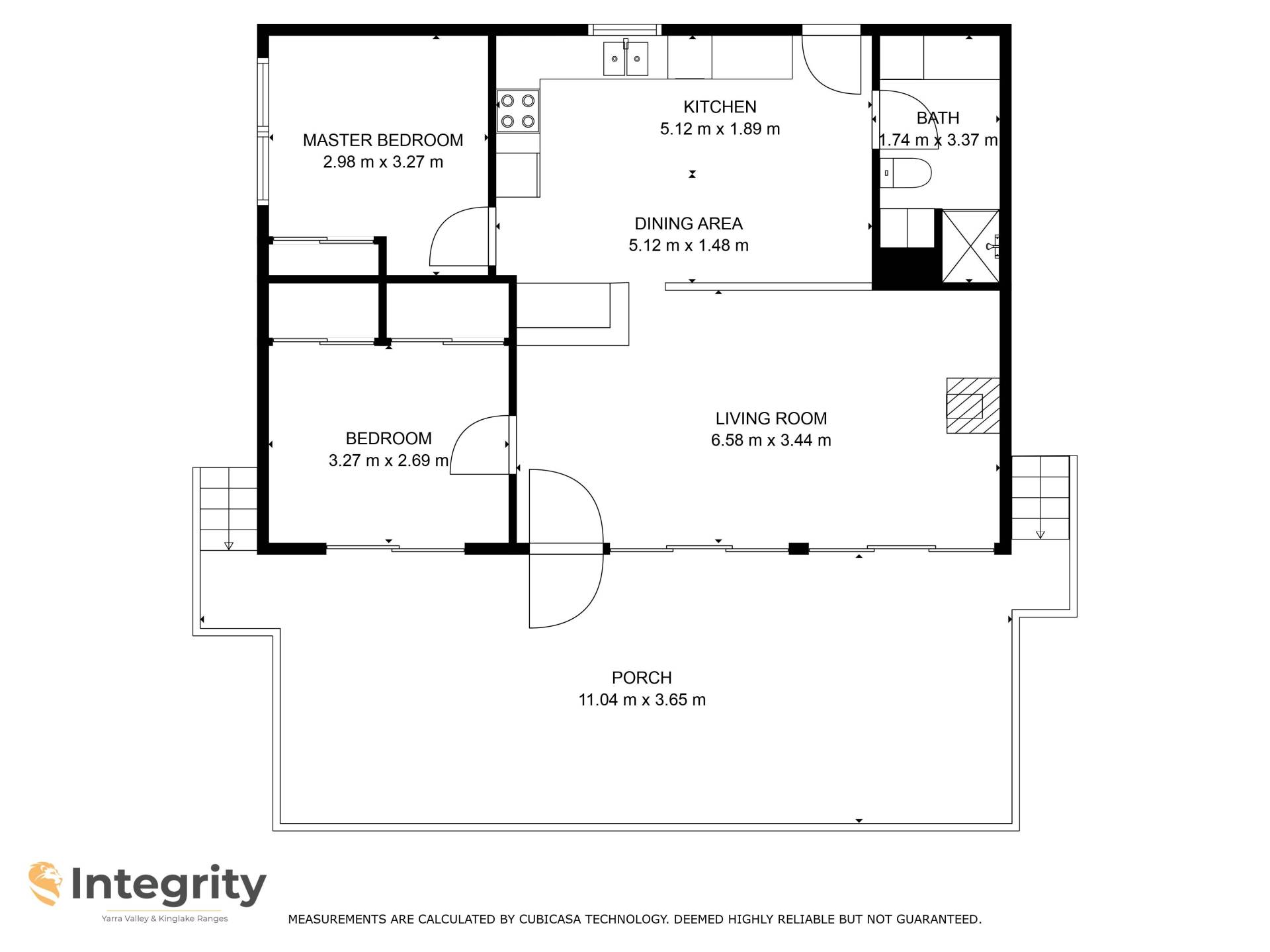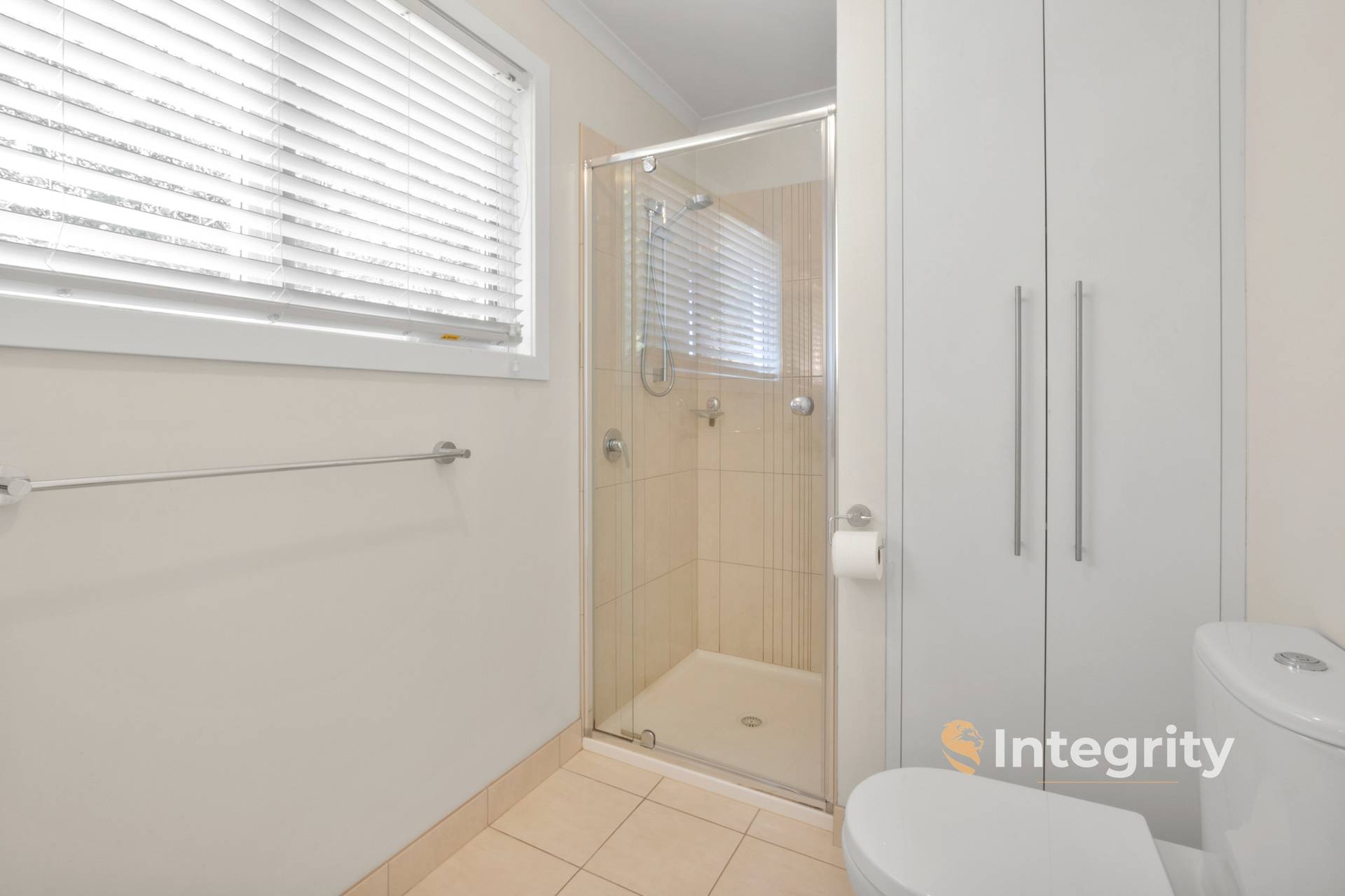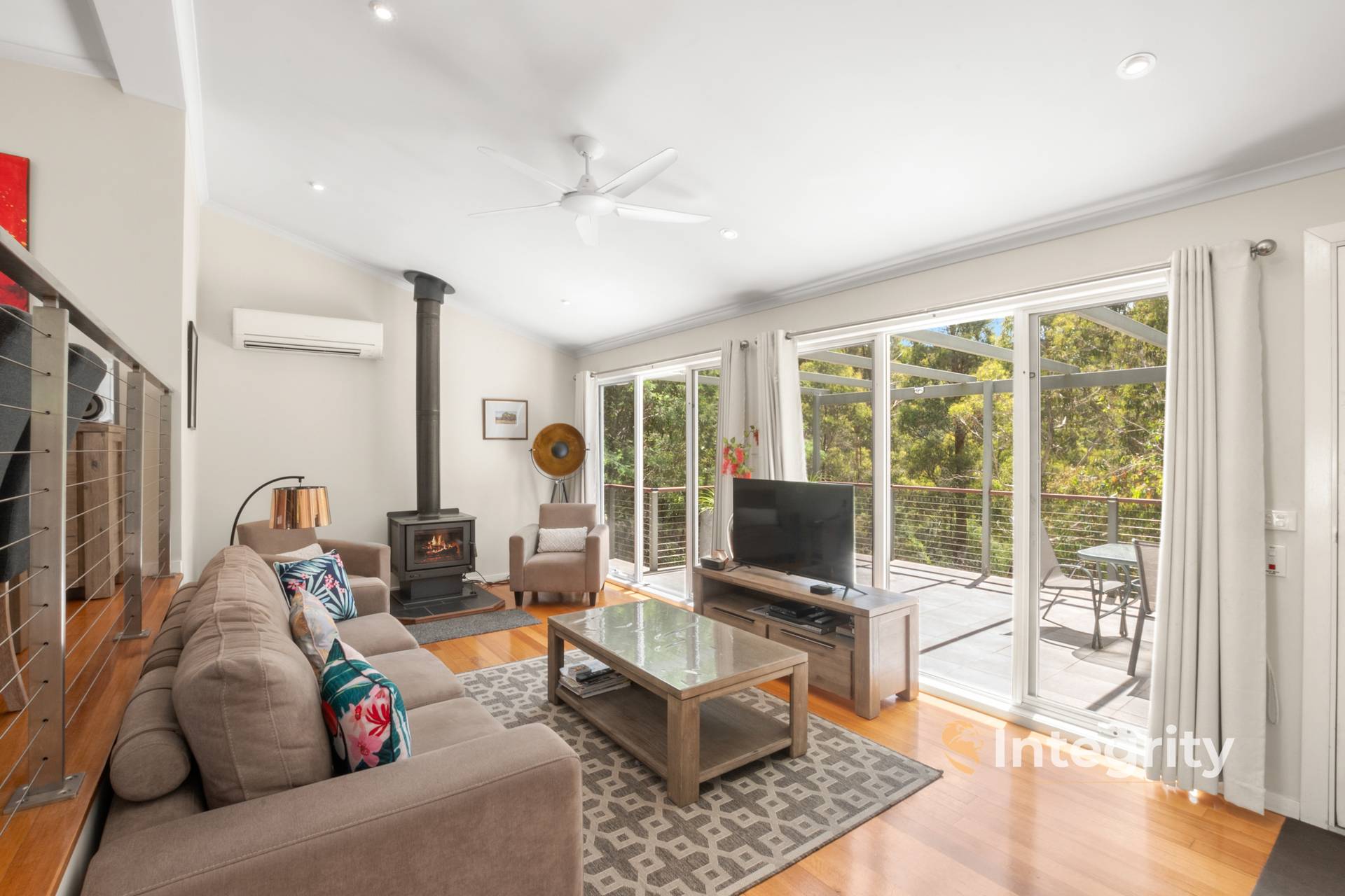 The wood heater ensures warmth during the cooler months, creating a cozy ambience. There is also a reverse cycle air conditioner for all seasons. The bathroom/laundry, adorned with a linen closet, sink, and a 900mm shower, offers convenience and style. The outdoor experience is enhanced by the large tiled patio, offering a perfect spot to unwind and enjoy the surrounding beauty.