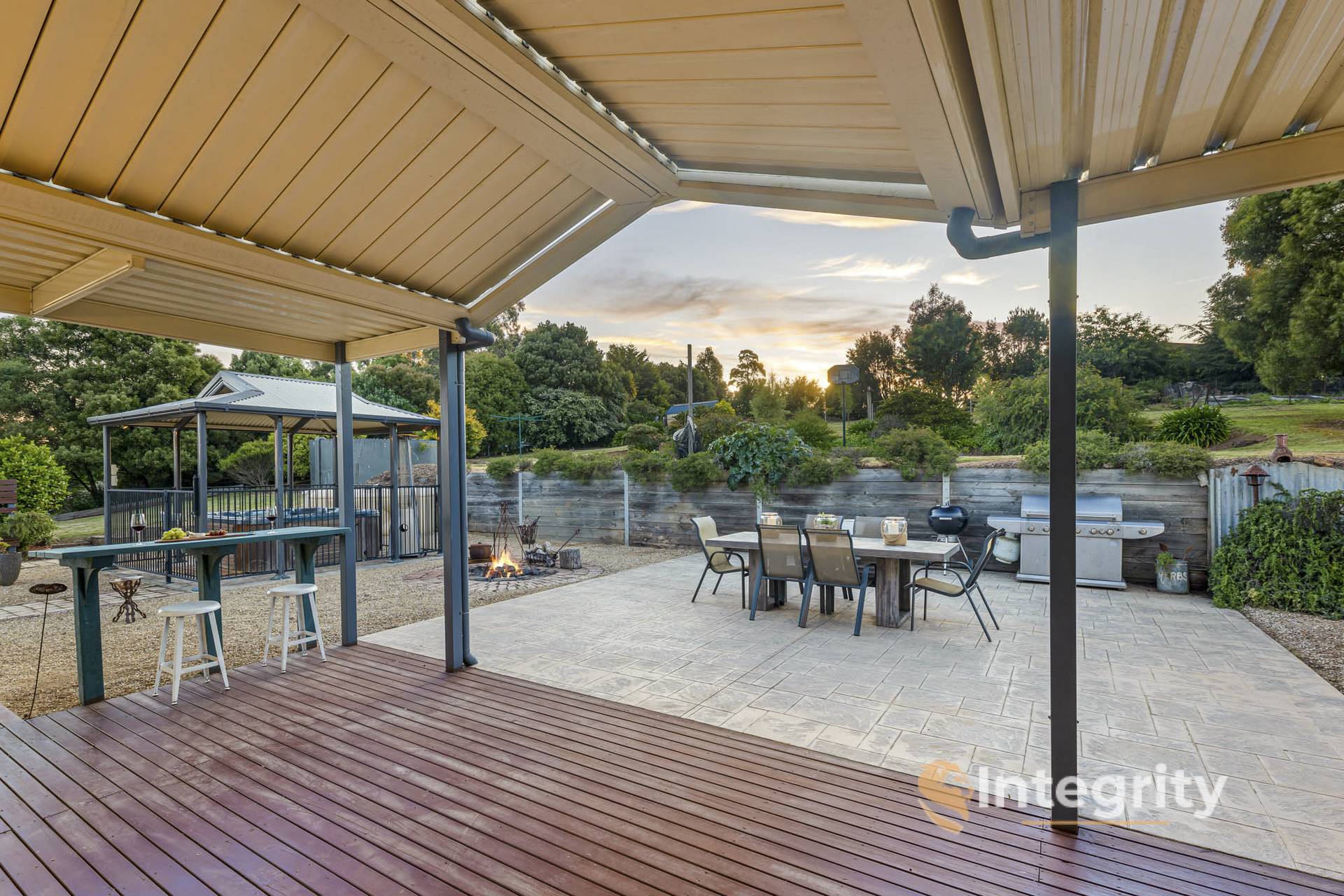 Revel in the stunning views of the mountains from the custom electric roof entertainment decking, complemented by a concrete patio and firepit. Indulge in relaxation with a 6-seater spa, enclosed by fencing for safety. Embrace the outdoors with an orchard area and a veggie garden, tended to with care. A double lock-up garage with internal access caters to your parking needs, while a separate shed houses the ride-on mower. A garden shed provides storage for your tools.