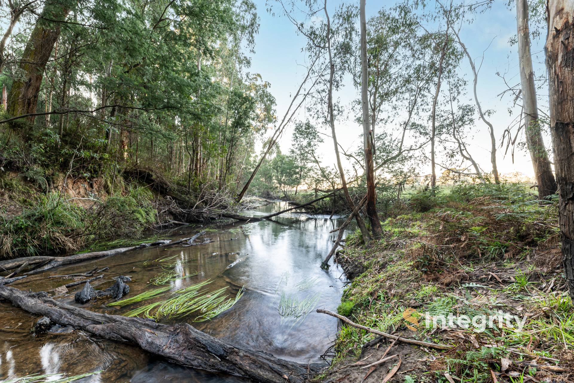The property's standout feature is its unfettered access to the stunning Island Creek and full Yea River frontage, offering serene water views and the opportunity for various water activities. Not only is there a dam on the property but also comes with a 2-megalitre water licence and backs onto Toolangi State Forest and Kinglake National Park, providing endless potential for outdoor enthusiasts.