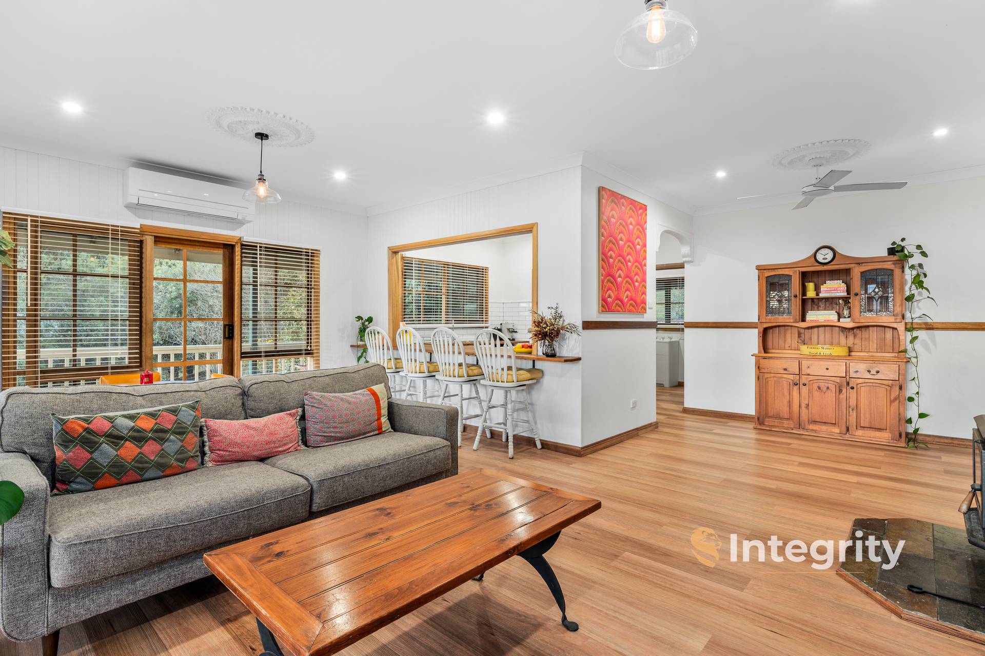 Every room has ceiling fans, in addition to the reverse cycle split system and wood heater in the main living room. Additional modern features include LED lighting throughout, Satellite NBN and 9 ft ceilings.