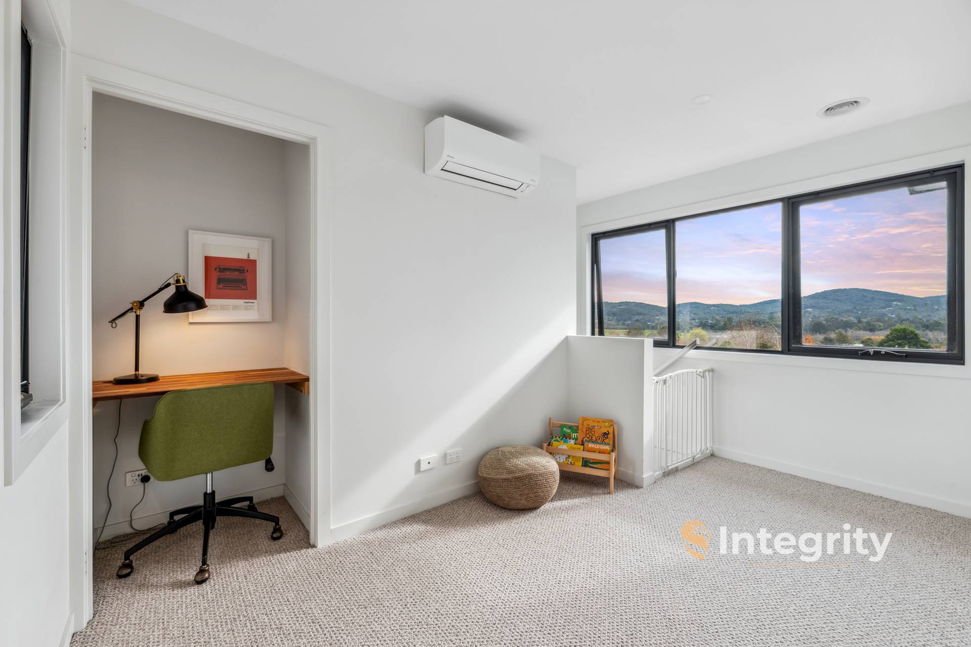 The home comprises master bedroom (with en suite and walk-in robe), built-in robes to all other bedrooms, and an additional study nook. There are block-out blinds upstairs, and dimmable LED lighting. The home is all class: complete with stone bench tops (now impossible to acquire), blackbutt flooring, authentic wool carpets, and a great yard with pergola. You can admire the north-facing view from inside the dining room, upstairs bedroom, backyard and study area. The home is heated with gas ducted heating and cooled with reverse cycles upstairs and downstairs.