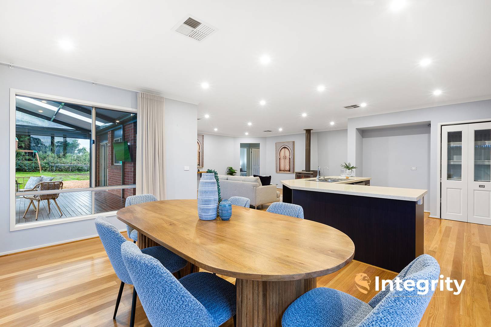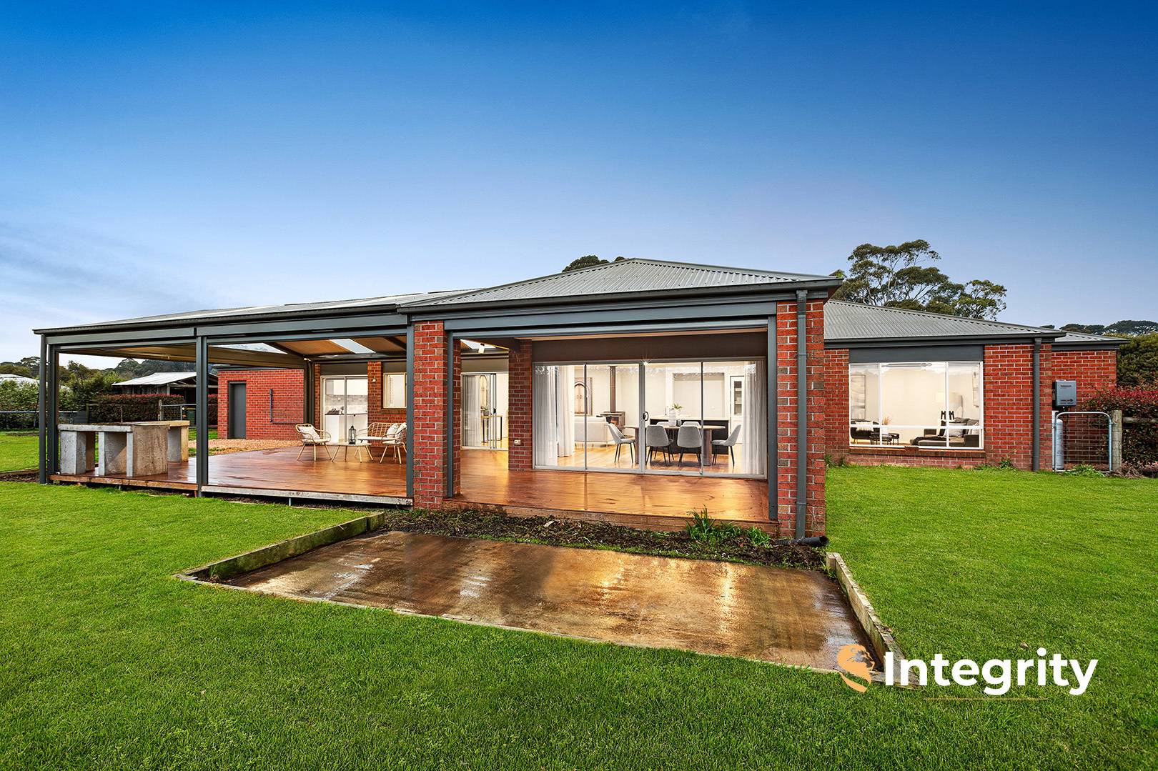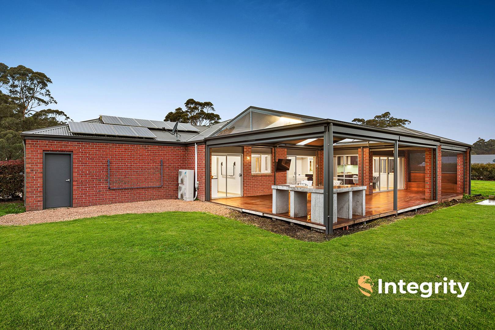 Positioned in the highly sought after, rapidly growing Kinglake Ranges, you will find this open and spacious 1 acre plus holding showcasing a stunning family home. For any buyer dreaming of a quiet regional lifestyle change with shedding, this property is calling your name. Upon entering the property you are greeted with a glorious circular brick-lined driveway creating a sense of grandeur to the property. Walking through the formal entrance you will be greeted with high 9ft. ceilings, Blackbutt flooring and quality fixtures and fittings. Boasting 4 bedrooms, 2 bathrooms with open plan living with kitchen and meals overlooking your private backyard. Imagine evening entertaining on your merbau alfresco with the sun setting over Gangelhoff Hill and surrounding farms. Escape to your large master bedroom complete with walk-in robe and en suite with double shower and double vanity. All other bedrooms have large built-in wardrobes fully fitted and with the addition of a walk-in linen closet for the growing family. Other standout features consist of Daikin refrigerated zoned ducted heating and cooling system, ambient wood heater, built in robes to all bedrooms, LED lighting, Caesar stone benchtops, double pantry, and 900mm Technika oven just to name a few. Completely repainted, block out blinds dressed in floor to ceiling sheers and fresh, bathroom venetians. Satin finish, hardwood floors are the finishing touches on this beautiful property. On top of all that the property comes complete not only with mains power but a full 26 panel 5.5kw solar panel system and generator backup switch. Plus, a new 6 x 9m Pergola + alfresco entertainment decking area both with electric weather proof blinds and outdoor concrete bench area perfect for food preparation and finished off with TV points perfect for hosting gatherings.