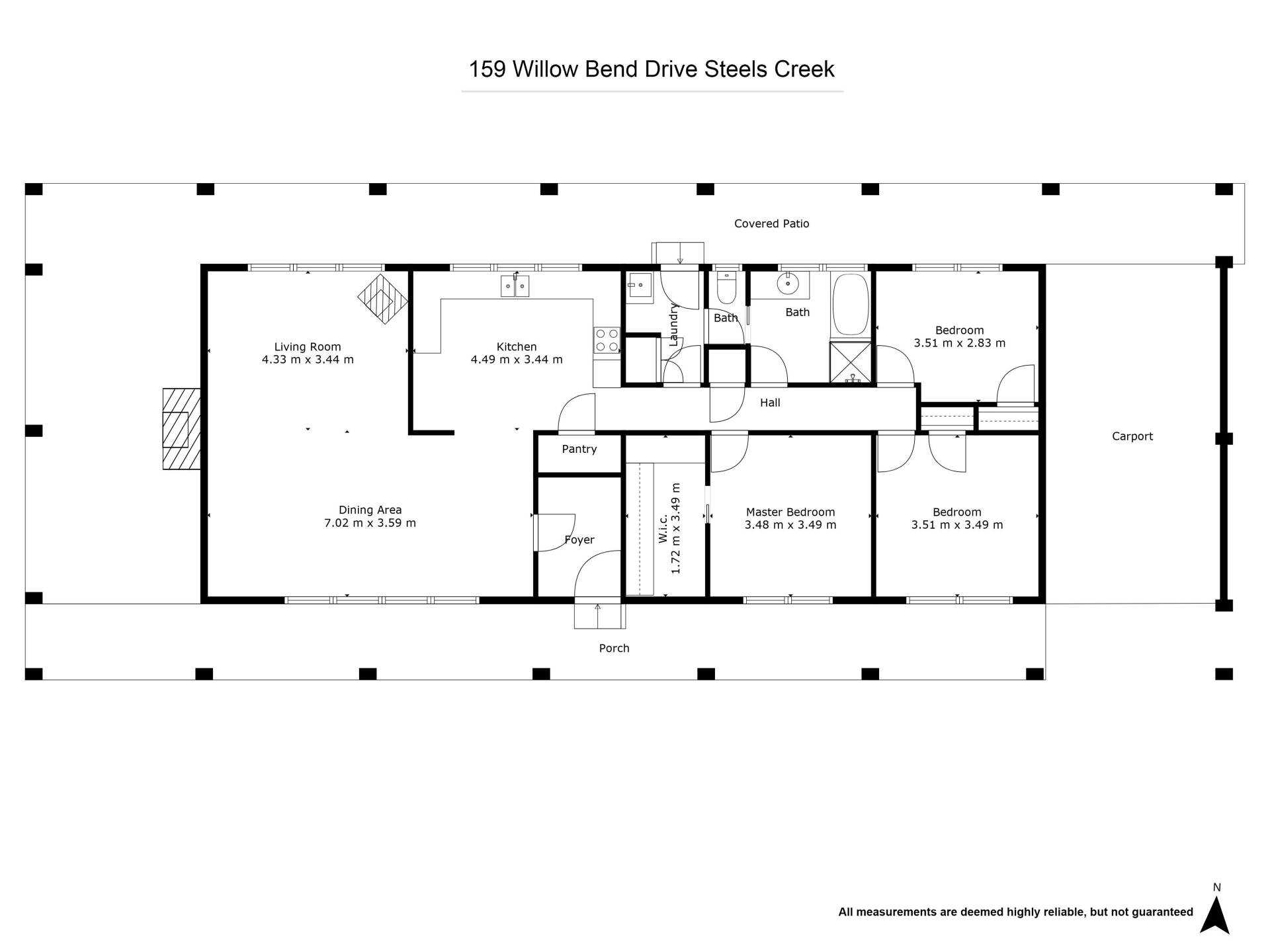 The home with wrap around veranda's consists of 3 bedrooms, formal L-Shape lounge/dining room, kitchen, bathroom, laundry, double carport under roof and a large under roof area with an open fireplace for entertaining.