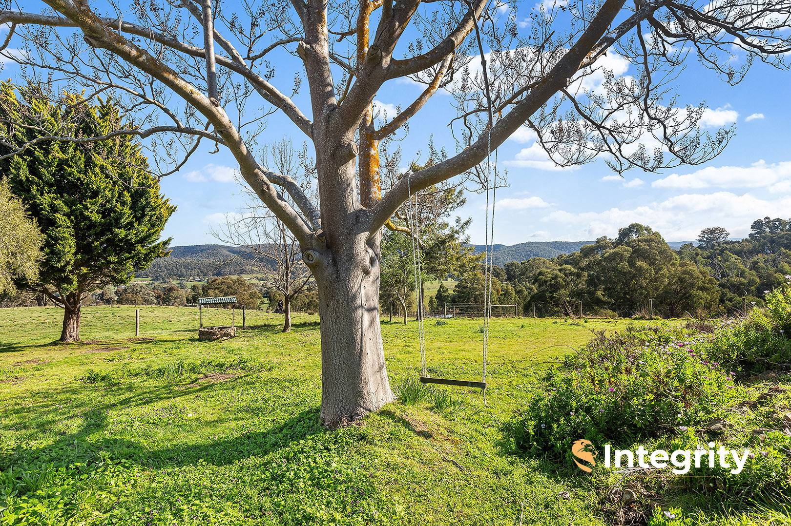 Features include: R/C A/C, the ambiance of wood heating, beautiful leadlight panels that lets natural light into the home and soaring cathedral ceilings. The gardens are lush and well established and there is a small orchard of various fruit trees to enjoy. Apples, pears, oranges, and lemon trees just to mention a few. Shedding on the property consists of one 9 x 6 m and a 6 x 5 hay shed.