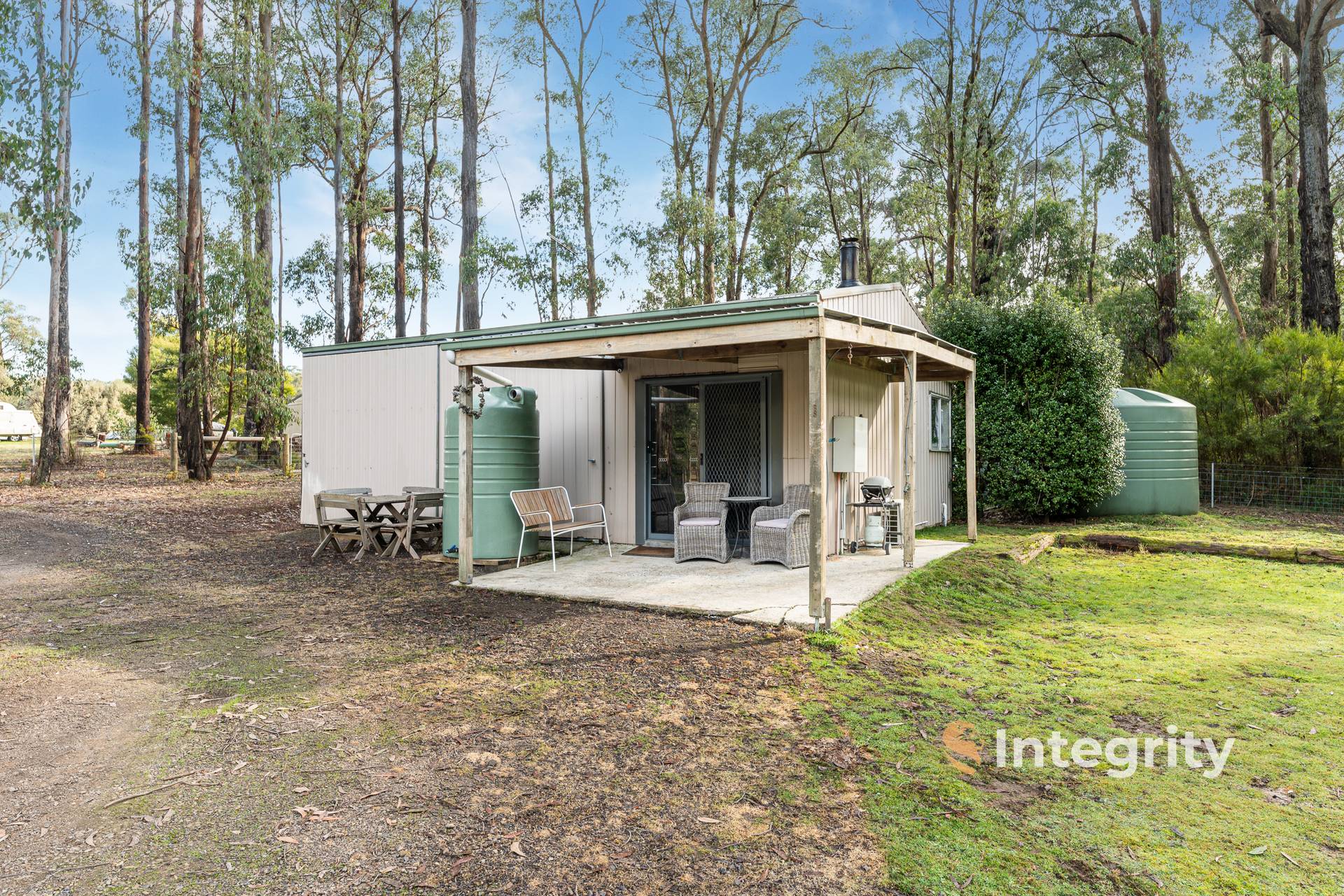 Less than 16 minutes to Whittlesea, the property is mostly cleared and come complete with large studio shed with power, services, amenities, and storage bay perfect for starting your dream home and interim use. It is fully serviced with all connections including 2x 20,000L approx. water tanks plus 2000L garden tank. Separately there is a built in 6 person bunker ready to go for dry storage, cellar or backup use, as well as 2 fully sealed 20ft. container for further lockable storage while you build.