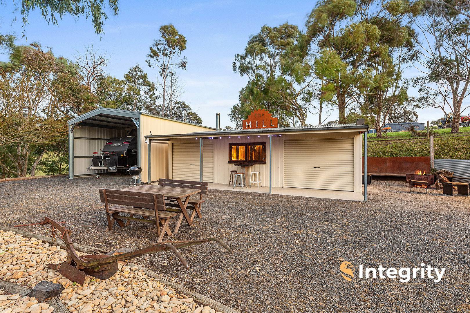 You will appreciate the expansive grounds, flowering gums, manicured lawns and dam at the rear. Ample car accommodation comprises a near 6.5x10m garage and workshop with remote control, a 6x8m high clearance open shed for caravan and boat storage, and an enviable 5x9m man cave shed known as "The Mill", complete with speak easy bar and wood heater. Access is also a breeze with a circular concrete driveway with double access. The property overlooks the rear back and North Easterly views of the Ranges, giving that sense of privacy and escape.