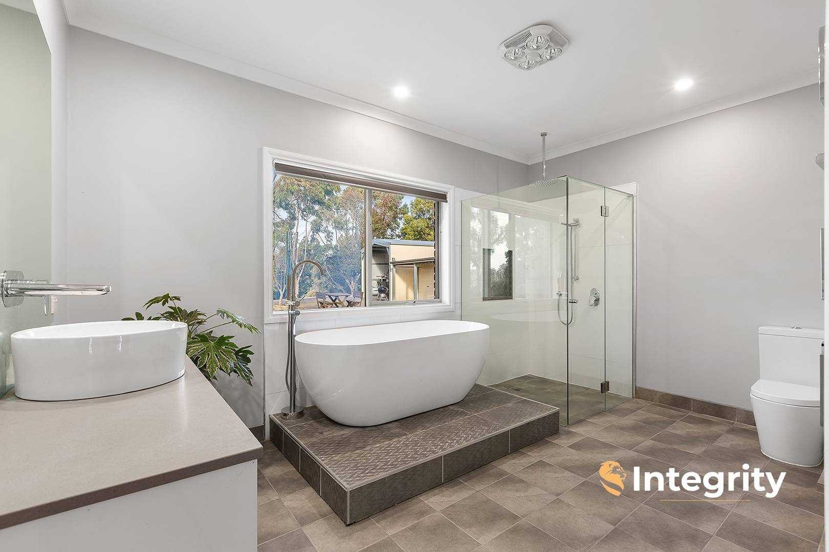 This spacious 4 bedroom plus study, 2 bathroom home boasts an array of features designed for comfortable family living. Consisting of open plan kitchen/meals area, large living spaces, rumpus room, and large laundry. All bedrooms come with built-in robes, providing ample storage space, while the master suite offers a luxurious retreat with a large walk-in robe, an en suite featuring a freestanding egg shell bath, a walk-in shower with a rain head and hose, double vanity, and toilet. The main bathroom is equally impressive, also with a freestanding egg shell bath, and 1100mm shower, and an additional toilet.