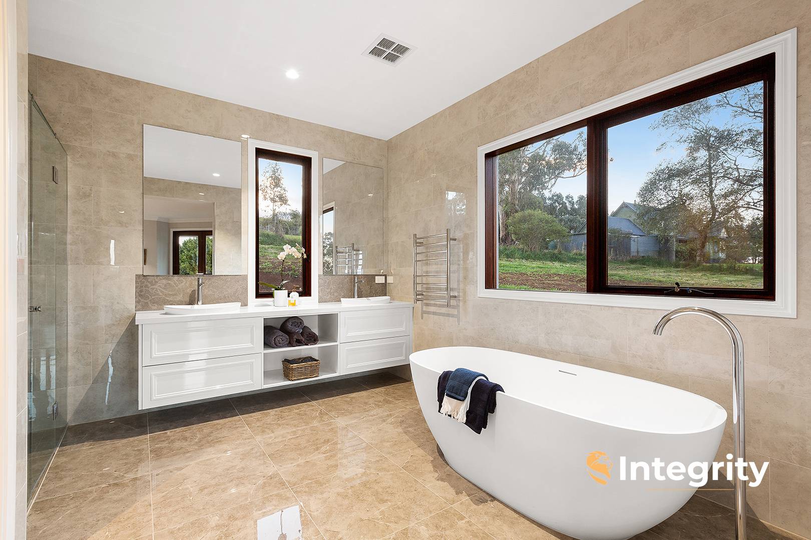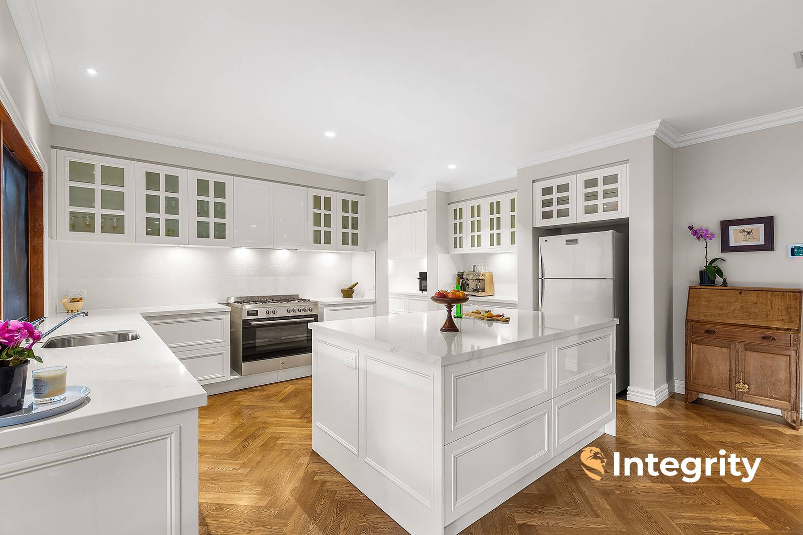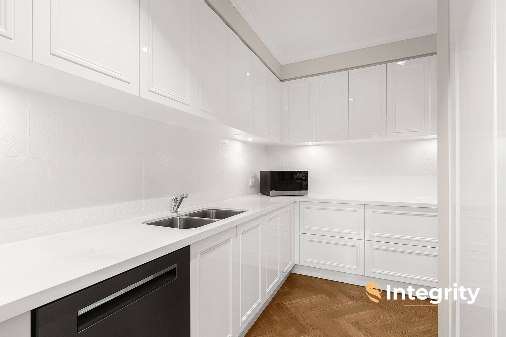 The well-appointed kitchen boasts a 900mm oven, marble stone benchtops continuing the vibe, plumbing for French door fridge, and best of all a generous walk-in butler's pantry, a chefs dream complete with sink, dishwasher, and 2-pac finished cupboards.
