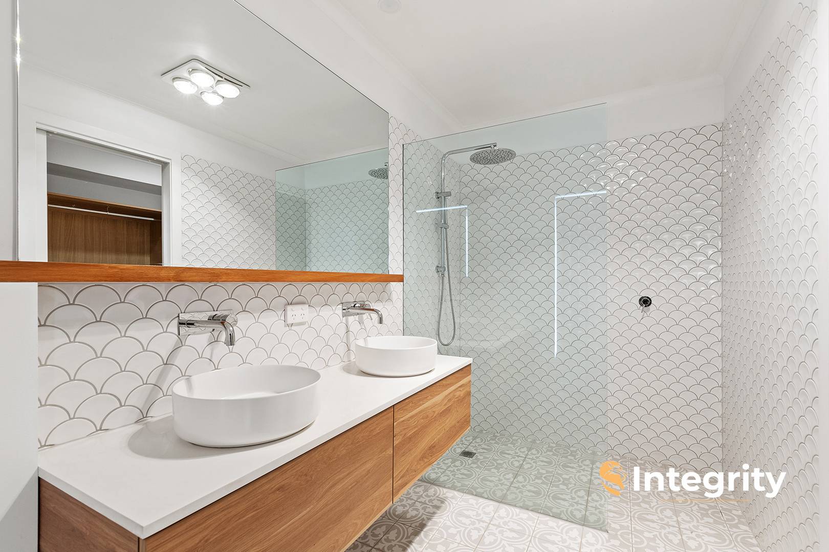 The home boasts 4 generously sized bedrooms, all featuring built-in robes. The master suite includes a walk-in robe and a luxurious en suite with a double vanity, ensuring privacy and comfort.