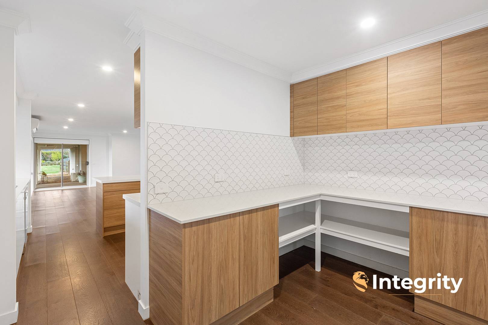 The contemporary open-plan kitchen is equipped with a butler's pantry and flows seamlessly into the dining area, creating the perfect space for family meals and entertaining guests.
