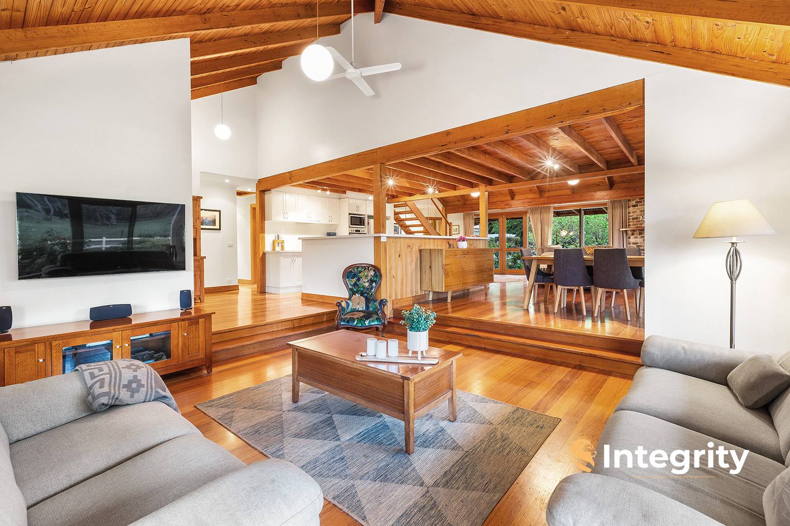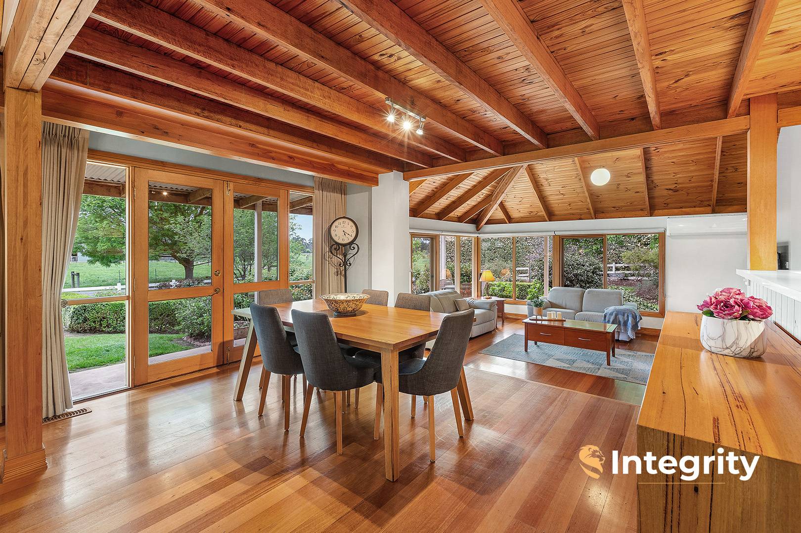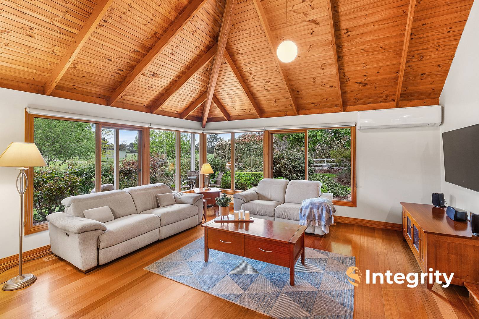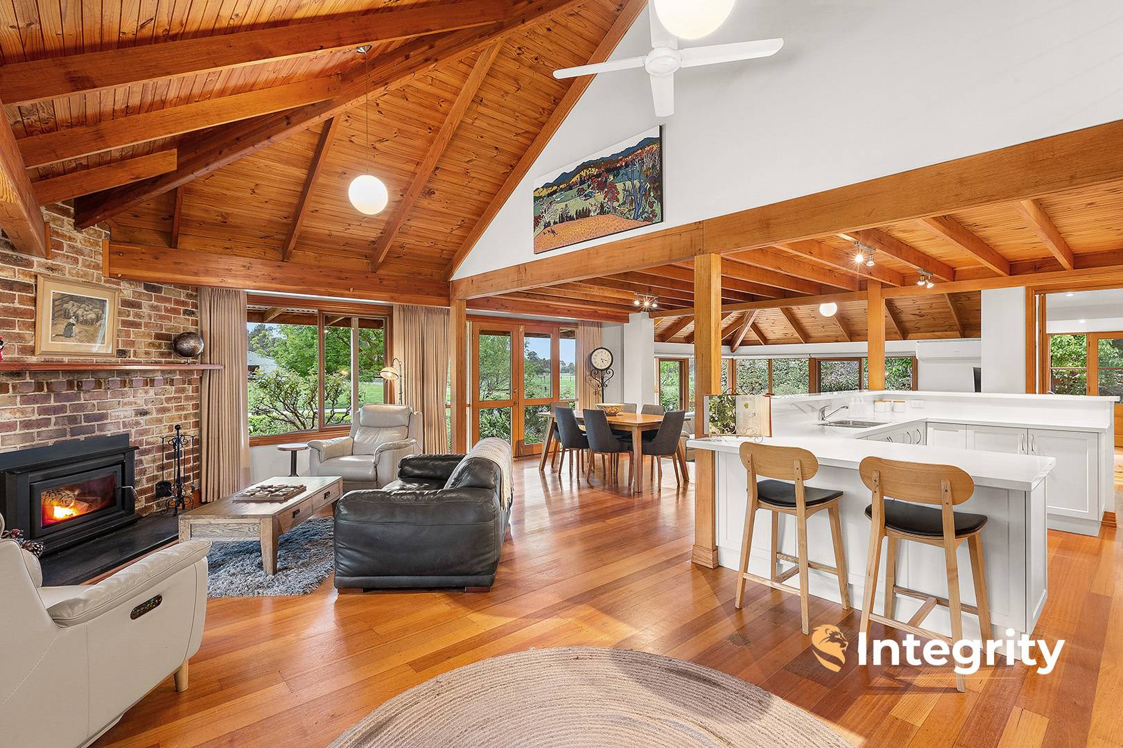 Attentive finishes include polished floorboards, Caesarstone benchtops and glass splash back in the kitchen. The home is heated and cooled with a combustion wood heater, ducted central heating and reverse cycle air conditioning. Additionally, there is an 8x7m garage, a 7x7m entertaining gazebo and wide verandas that provide covered access.