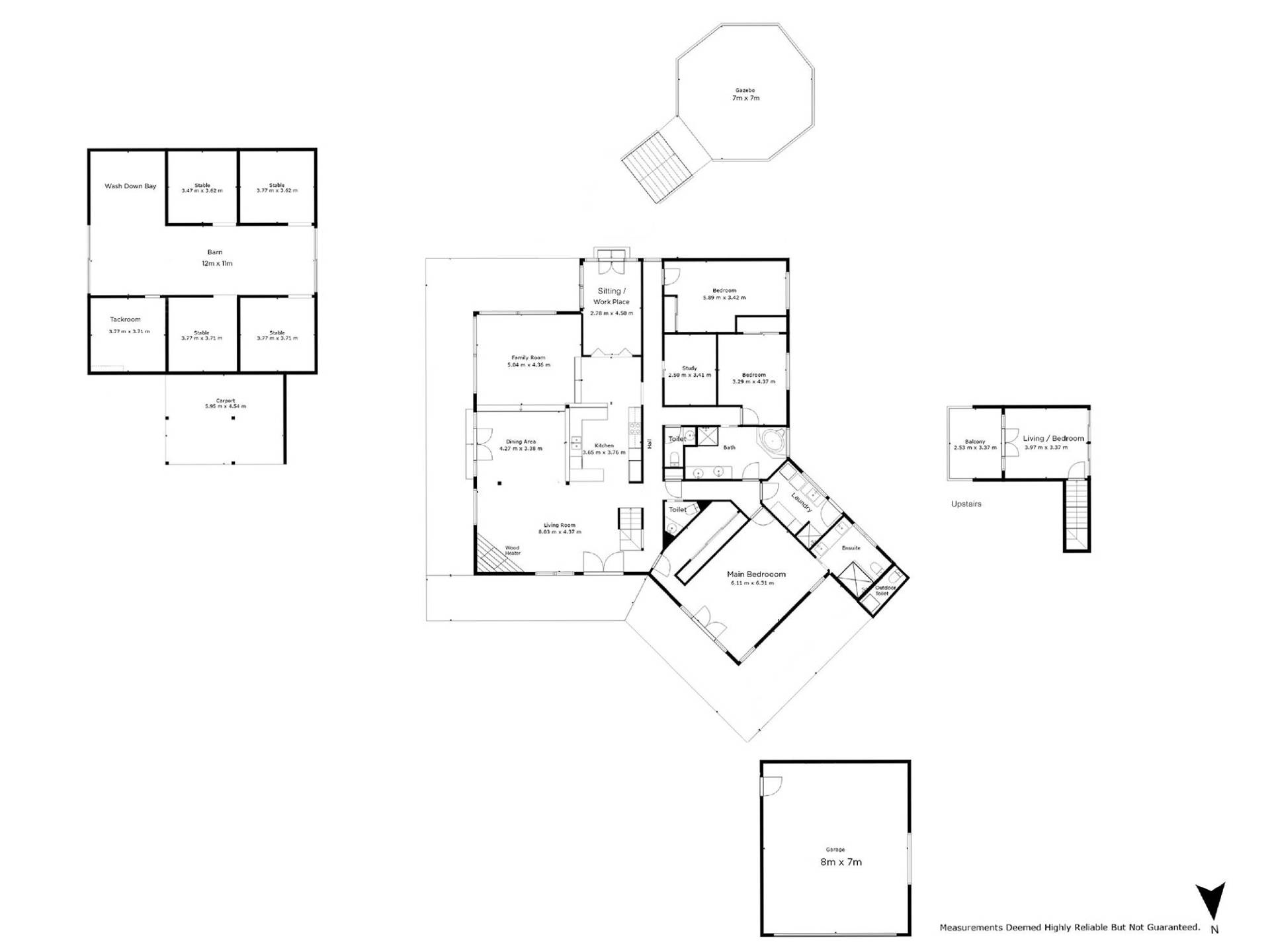 Externally, the property caters for all kinds of animal husbandry with cattle yards, a crush, electric fencing, 12x11m barn with 4 stables, tack room & wash down bay, Olympic-sized riding arena and 125,000 litres of water storage.