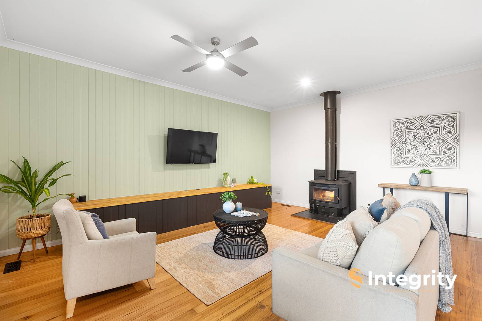 The home is air conditioned by electric reverse-cycle ducted air conditioning, 2 x split systems, ceiling fans, and a double-sided wood heater for both living rooms.