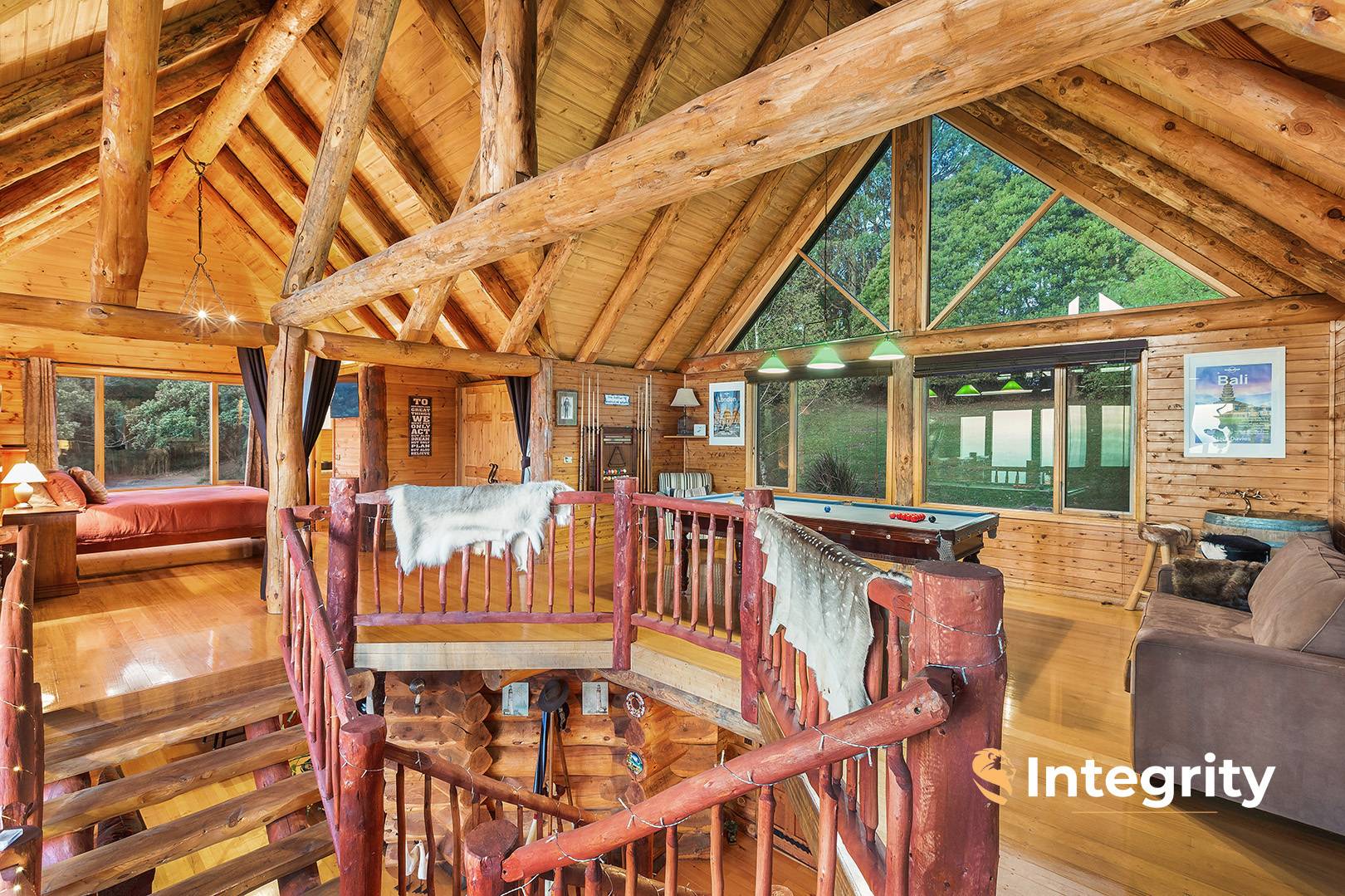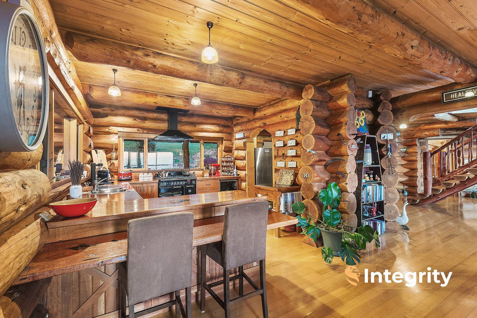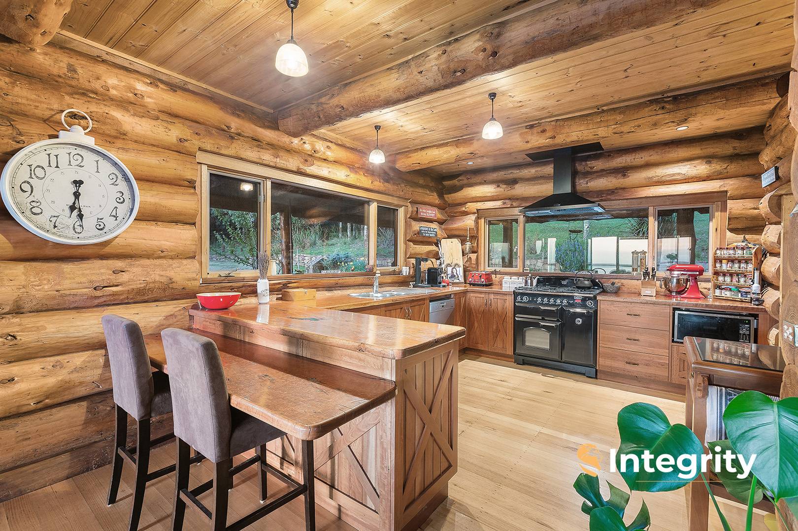 The unique, handcrafted Oregon log cabin perfectly blends rustic charm with luxury living. Spacious and inviting, it features 4 generous bedrooms, 2 bathrooms, an impressive formal lounge with cathedral ceilings, a cozy informal living area, dining room and mezzanine rumpus. The kitchen is a culinary haven with a premium Falcon stove and range hood, dishwasher and double sinks, adjoined by a spacious pantry. This is everything needed for carefree living and modern comfort.