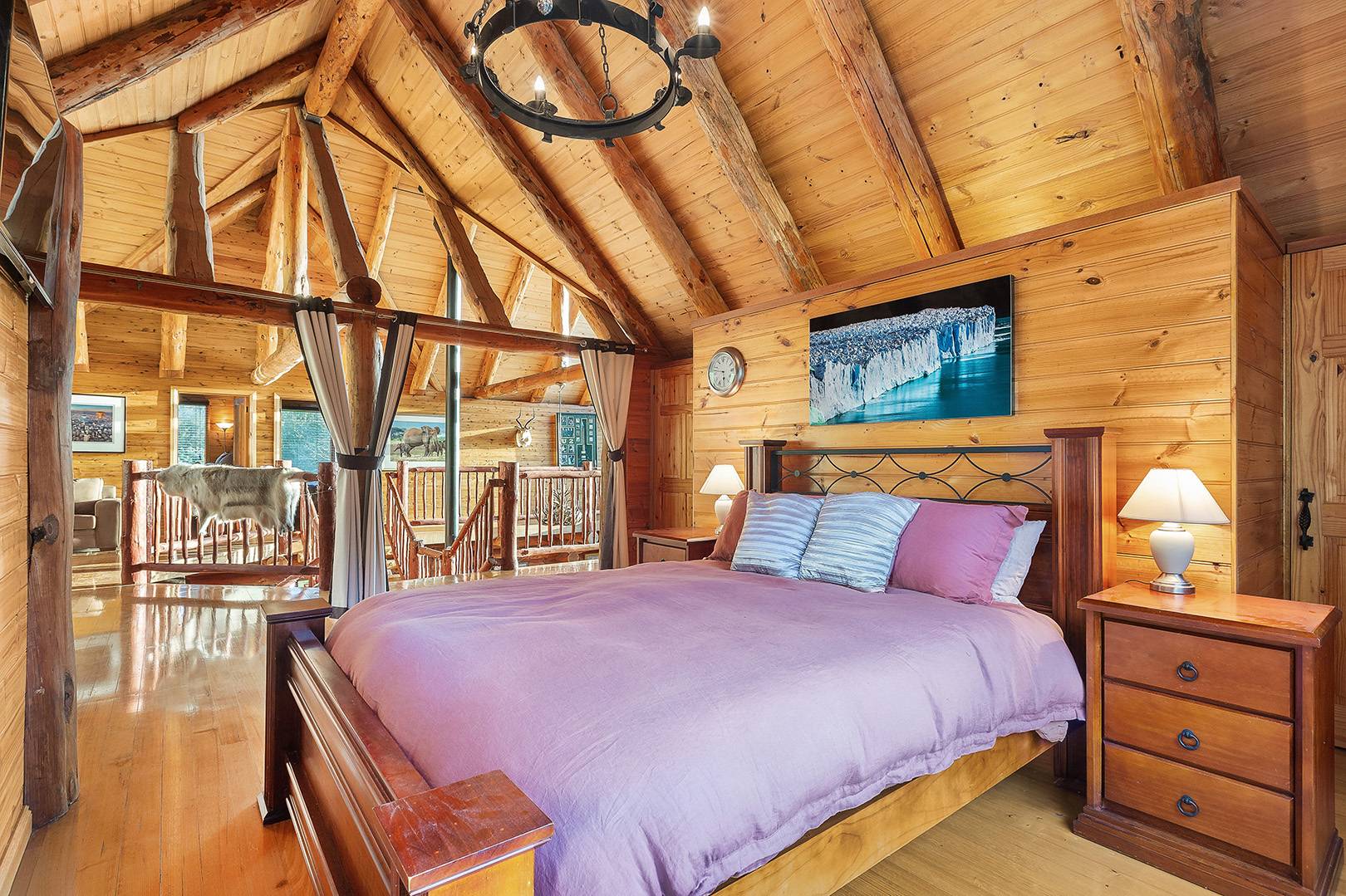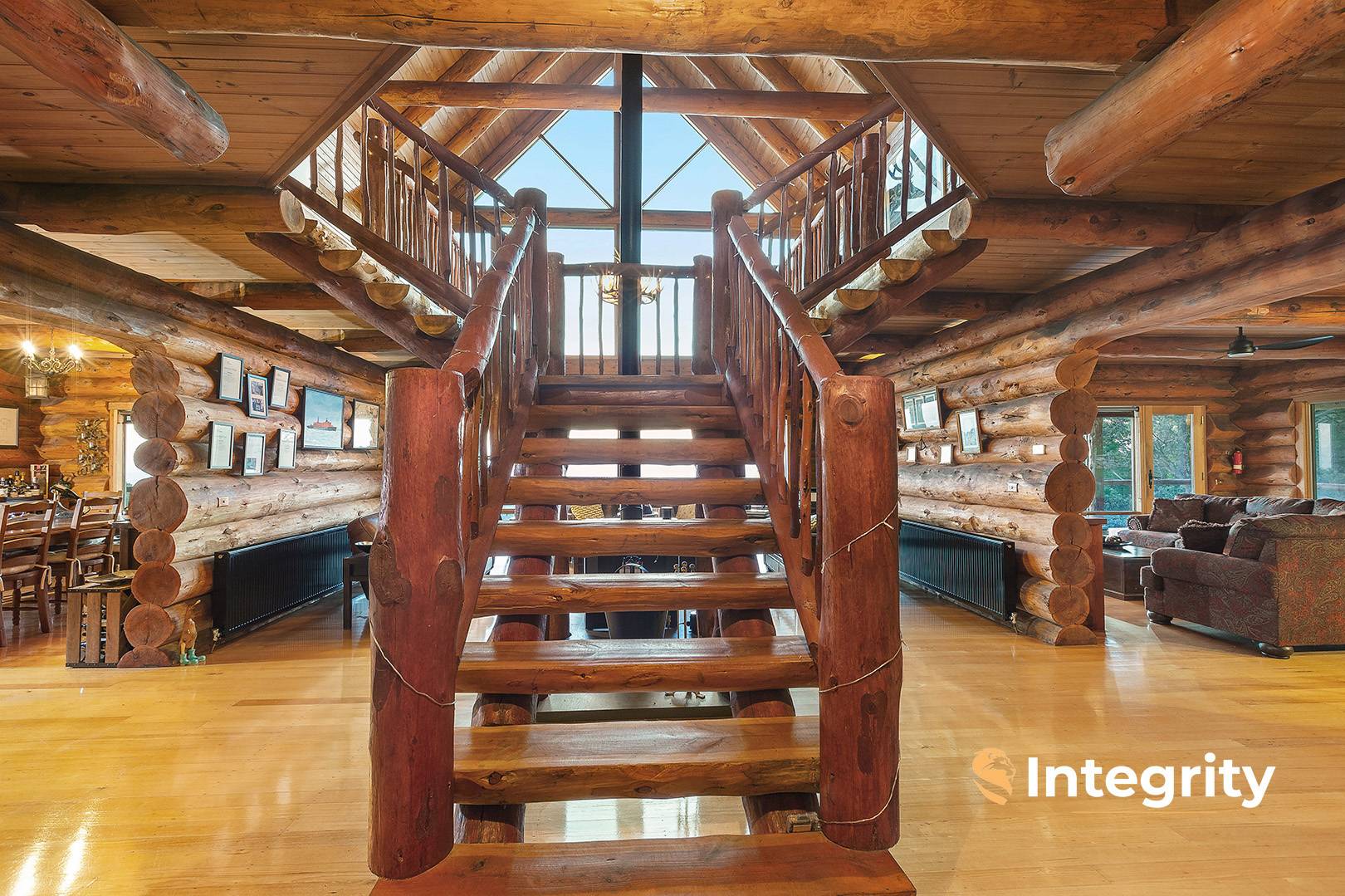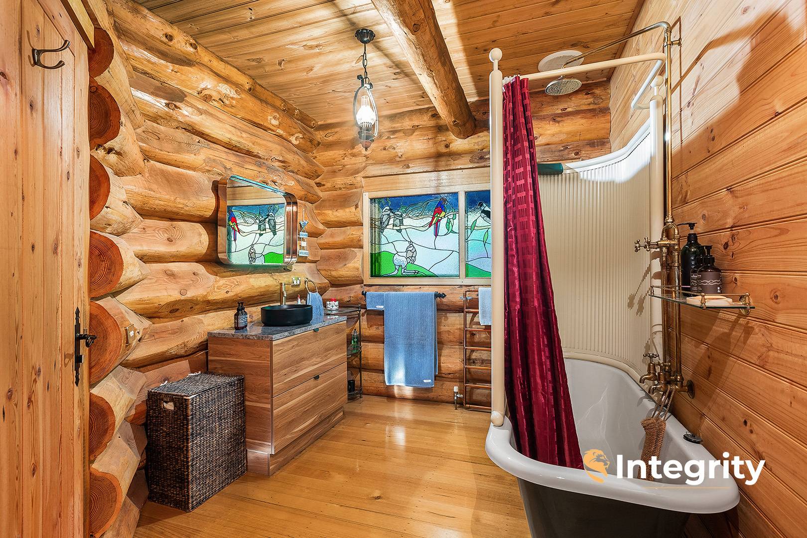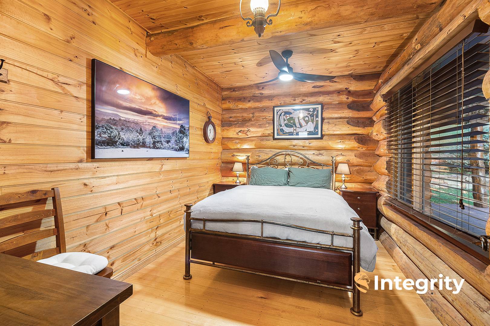 The unique, handcrafted Oregon log cabin perfectly blends rustic charm with luxury living. Spacious and inviting, it features 4 generous bedrooms, 2 bathrooms, an impressive formal lounge with cathedral ceilings, a cozy informal living area, dining room and mezzanine rumpus. The kitchen is a culinary haven with a premium Falcon stove and range hood, dishwasher and double sinks, adjoined by a spacious pantry. This is everything needed for carefree living and modern comfort.