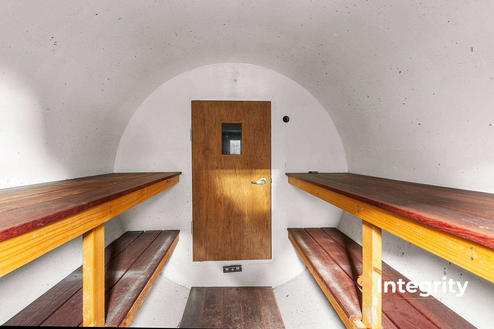 A barn-style shed with mezzanine floor, wood heater and bathroom offers a versatile space for extra storage or a creative studio. A second machinery shed provides additional storage. Equipped with fire hoses, sprinklers and an innovative fire bunker with seating/shelving, lighting and independent oxygen supply, every detail has been considered for safety in this tranquil bush setting.