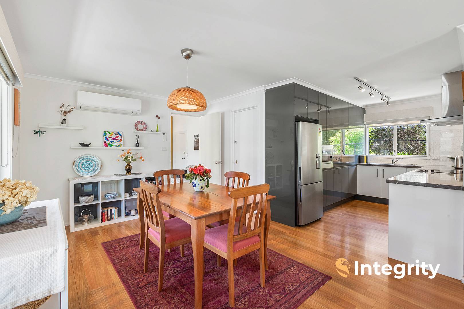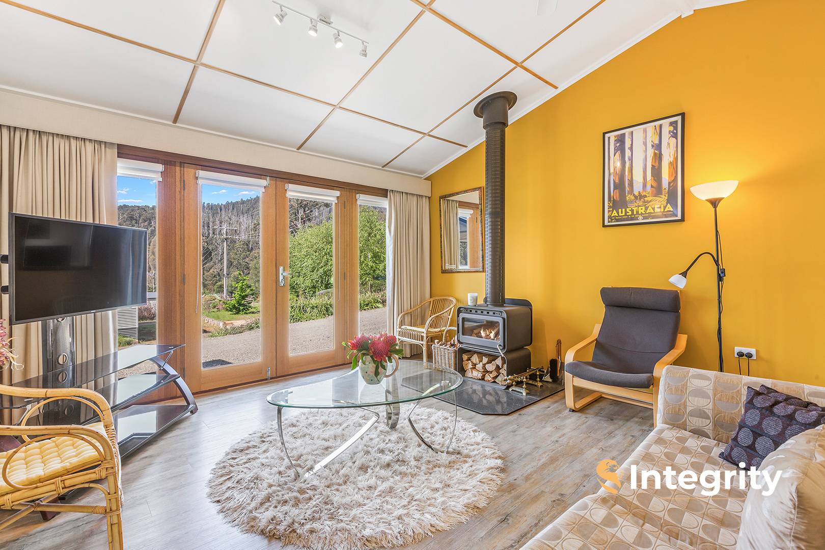 Energy efficiency is at the heart of Falls Cottage, featuring solar panels, double-glazed windows, a hot water system with a heat pump, and both tank and main water options. WiFi-activated pop-up sprinklers ensure the lush garden stays beautiful with minimal effort. For year-round comfort, the home is equipped with two reverse cycle split systems and electric wall heaters.