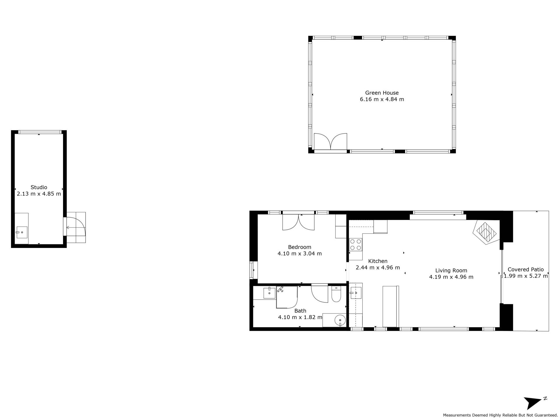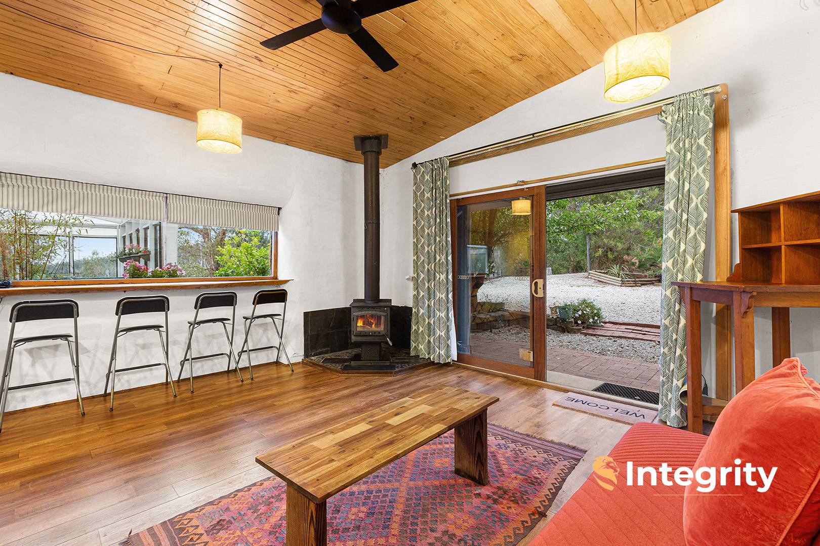 The secondary living space is housed in a unique shed, complete with straw bale walls, double-glazed windows, and a wood heater for comfort. This 1-bedroom, 1-bathroom space includes a kitchenette, dishwasher, induction cooktop, and a 600mm oven, offering flexibility as a guest retreat or additional living area. The slab is fitted with hydronic underfloor heating, and the property is powered by a 5kW solar system, reducing energy costs.